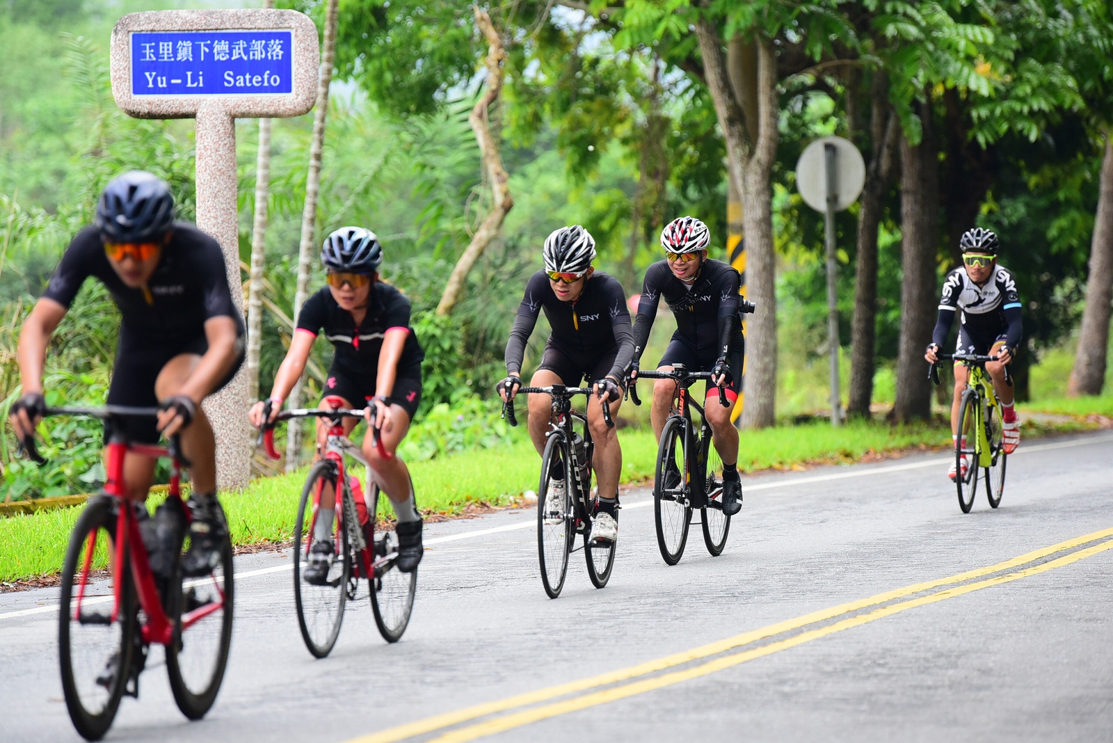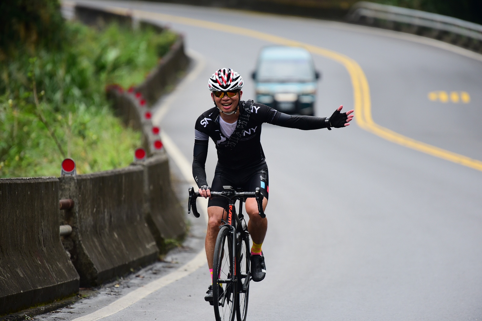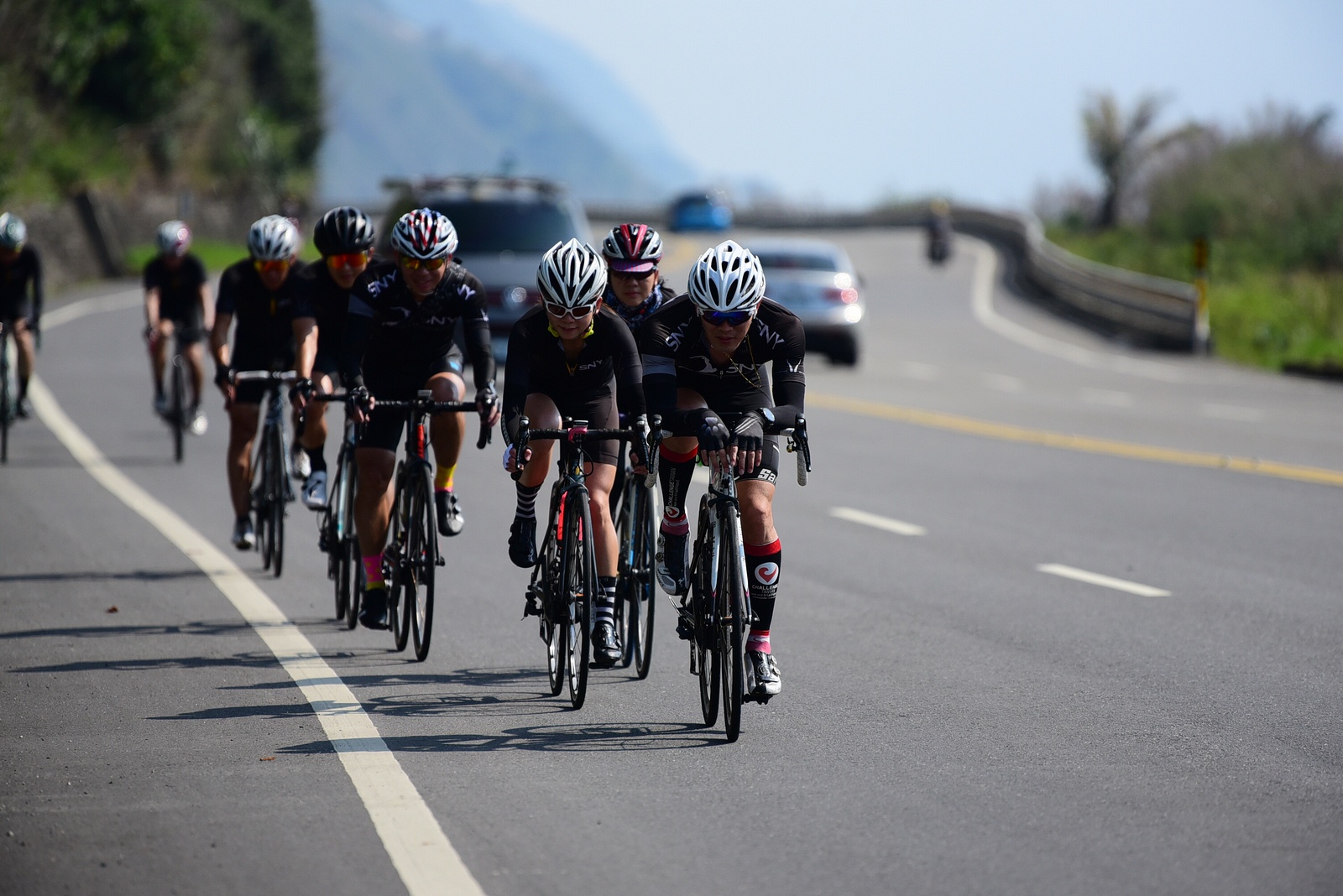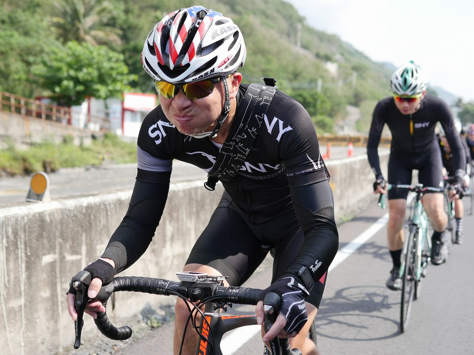 早早就報名了SNY東爽塔 老實說跟這群面惡心善的羊一起騎車,壓力實在不小 去年年底和PETER去滑雪撞到肋骨後又忙著再帶全家去一趟日本 整整快二個月沒有騎車跑步 體能來到新低點,而體重來到新高,接近70公斤大關 農曆過年後復出,先慶祝ALEX二哥冷水坑300登,和小猴、夏美一起騎上山 平等里騎個23分就喘到不行,而冷水坑前又被雙姝海放(很多人以為我假掰,但心跳來到185..真的不是假的) 才知道事情有大條.. 二月底先拿出塵封以久的訓練台,FTP打掉重練,180W就騎的我不要不要的>"< 努力了一個月後,在三月底奮力參加GBIKE的一日宇老,騎到被團長和EROS放到天荒地老去 不過有這一役,長途耐力似乎也進步不少 訓練台上180W騎40分鐘也不會騎的要死不活了~XD 4月中和甩油團一趟福隆來回,在到福隆前不小心擦撞LEO後輪 整個人側摔出去,還好只有擦傷和黑青 但車架後勾爪卻GG了~ SNY東爽塔即將舉行,也不好意思和朋友借車 剛好一個機會問到便宜的GIANT ADV PRO車架 短短一星期內就將我的新車組好 馬上首航五分山,新車GIANT完全不輸SCOTT(立馬就變心,哈哈哈) 再來就看是大戲上場 -- SNY東爽塔 事前一直在想,集團會分裂成幾個? 我要跟那一團?? 怎麼想都沒用...取決於主集團的強度啊!!!! 奇萊燈塔一出發沒多久就因紅綠燈被斷成二個集團以上.. 天空又飄著小雨.. 心想,不急著追領先集團 後來發現EASON從後方開了一輛車上來 那當然就順風搭上.. 穩穩的追上領先集團 合併之後,強度逐漸拉高,到鳳林前基本上都是微上坡.. 因摔車陰影加上天雨路滑 雖然跟車,但強度基本上都在接近200W左右 可見的前面破風領騎人員,至少都是250W以上的水準~ 在某個路口光叔一回頭看到我還黏在隊伍後面.. 直接露出驚訝的表情~哈XDD 過了壽豐的新豐平大橋後,是一段緩下再緩上的地型 集團強度減弱不少,平均瓦數只剩150W.. 算可以好好喘口氣!! 領先集團就一次挺進到光復糖廠前的小七(約52KM處)第一次大休息 停好車後,後面的羊群看來分裂成不少小團體 一個個陸續抵達 大休45分後大家到不遠處的大農大富集合拍照~ 這個筆直的小路一點都不輸伯朗大道 大家又在這歡樂好久 但從這之後就要進入風景優美但是是丘陵地型的193縣道 看EASON一帶頭往前騎,立馬就追上去.. 這一段整體而言是緩下坡 但中間不少短上坡 理論上應該是比第一段輕鬆的路段 卻搞的我一出發心跳就直衝170.. 領頭羊看到坡就抽車拉轉, 抽車拉轉.. 看到火哥來又興奮衝刺 沒拉個幾次,我就只能看到列車遠去~ 還好三峽張老闆一直用穩定功率在後面騎 刷過我時,順便帶我上車追上主集團 但又一輪猛攻下.. 這次我和POLLY一起雙雙落下 很想接回隊伍,但怎麼追就是追不到 某處已相當接近,一個轉彎又看到短坡 只看到領頭羊又抽車拉轉的.. 馬上宣告放棄...而膏多的POLLY也只能手叉腰嘆氣~ 但POLLY不放棄,還是奮力跟上 我就打定主意不跟了.. 沒想到主集團整個放慢.. EASON還特地退下來帶我接回隊伍~ 這群面惡心善的羊怎麼會這麼甘心啊... 那193縣道漂亮嗎? 只看到的前面的羊屁股啦~ 跟車的來不及了 那來的及看風景 光叔後來終於說話了:「這裡很漂亮耶~,要不要停下來拍照??!!」 終於...可以停下來拍個照喘口氣了~ 呼~這麼漂亮的地方好好看風景不好嗎??XDD 一定要打打殺殺的XDD 停了一下..列車再度啟動 經過剛一輪猛炸~ 我決定躲到第二集團團長的後面就好~ 團長瘦瘦的,但膏真的不少.. 且帶好穩...,不會間歇一直拉~ 也不會慢領先集團太多 躲在這團內真的舒服太多了!!哈~ 經過193的殘虐 雖然在小七休息好一會 但還是沒什麼膏了 再來的玉長公路就直接目送主集團離去 我自己慢慢凸上去就XD 玉長公路不陡,但沒力就騎不快 慢慢凸到隧道口準備開心下滑時 沒想到..下雨!! 除了少部分領先集團已經衝下去了 其它人為了安全起見,全部上車 EASON傳訊息來說山下是地乾無雨 本想到山下繼續騎 不過看來剩下10多公里就要到成功吃海鮮 那我們就直接在車上幫領先集團加油吧~ 只是沒想到一路上只追到零星幾位掉隊的羊 其它的在進市區時才被補給車追上 不得不說這些羊膏真的很多且速度很快XD 晚餐本來要在宋媽媽吃海鮮 不過因為人數太多,只能改另一家 就略遜一籌 吃完因為想要去台東幫參加CT 226的鐵人朋友拍照加油~ 就沒有夜騎到太麻里去..(從成功過去還有70多公里,這些人真的太猛了!!!) 在台東鐵花村順利等到范愛妻、筱嵐姐、仲哥、佛系鐵人STAR鴿和健榮...(來不及等到小猴XD) 看到他們回來真的有感動~太厲害了 我今天才騎100KM就累的半死 226鐵人要先游3.8KM,再自己破風騎180KM,最後再全馬...想到就眼神死 請不要再推坑了!!XDD 讓我把對你們的佩服深深放在心中就好!!:D #感謝226超人組在梳洗後就馬上載我回太麻里的飯店,真是太有情有義了!! -------------------------------------- DAY2 今天是未知的行程,儘量能騎好騎滿~ 但不能也就算了~ 有了昨天的經驗 出發後就早早跟上肉絲後面去.. 這樣就算跟不上英菁組的,在團長後面也不會掉到那去~ 還好出發時強度沒拉太高.. 大家就一起順順騎到金崙去 看著筆直的新大橋,全羊都停下來騙照.. 騙了一張之後,有部份羊群已開始逃脫 英菁組的當然沒在怕.. 但我心想,我若繼續留下來騙,等會又跟不上英菁組的就會死很慘 也來先逃脫好了.. 接著就跟著炮哥一路往前推,無敵哥,芬達,慈哥,穆哥,盛哥和糖姐也都