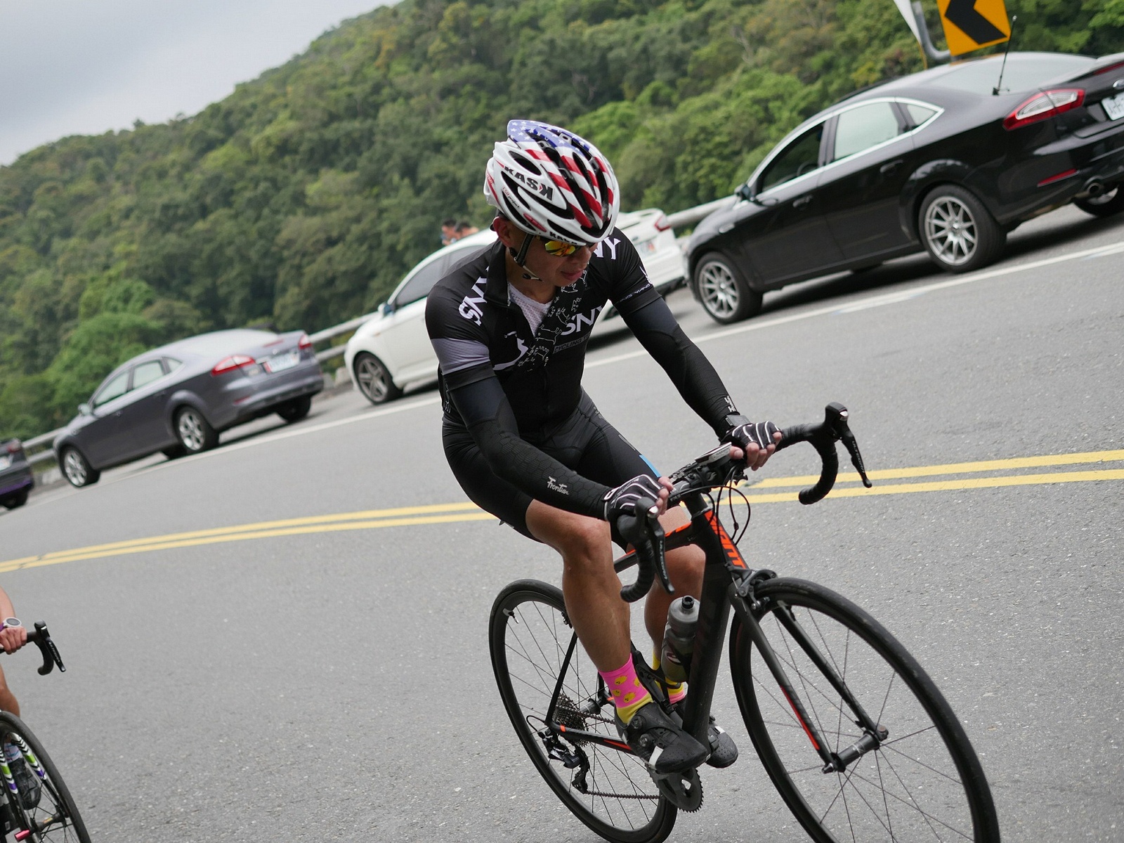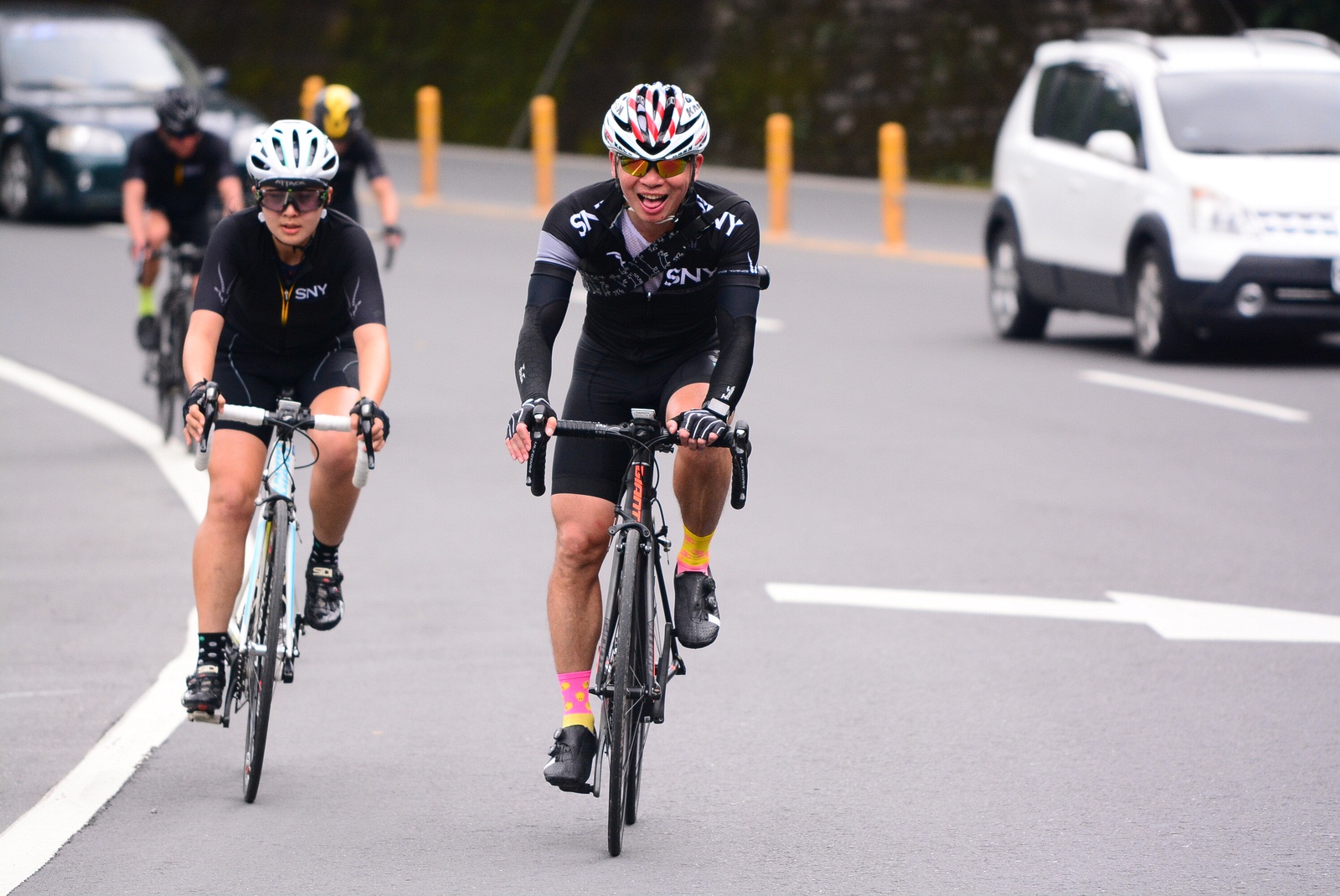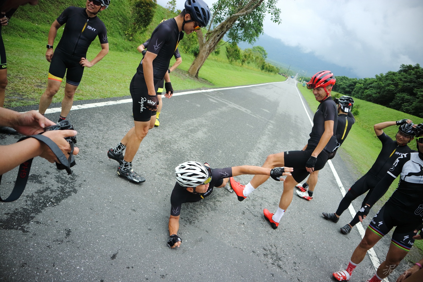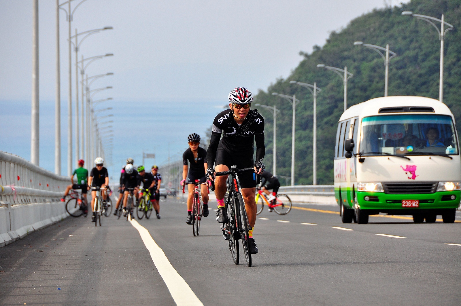早早就報名了SNY東爽塔 老實說跟這群面惡心善的羊一起騎車,壓力實在不小 去年年底和PETER去滑雪撞到肋骨後又忙著再帶全家去一趟日本 整整快二個月沒有騎車跑步 體能來到新低點,而體重來到新高,接近70公斤大關 農曆過年後復出,先慶祝ALEX二哥冷水坑300登,和小猴、夏美一起騎上山 平等里騎個23分就喘到不行,而冷水坑前又被雙姝海放(很多人以為我假掰,但心跳來到185..真的不是假的) 才知道事情有大條.. 二月底先拿出塵封以久的訓練台,FTP打掉重練,180W就騎的我不要不要的>"< 努力了一個月後,在三月底奮力參加GBIKE的一日宇老,騎到被團長和EROS放到天荒地老去 不過有這一役,長途耐力似乎也進步不少 訓練台上180W騎40分鐘也不會騎的要死不活了~XD 4月中和甩油團一趟福隆來回,在到福隆前不小心擦撞LEO後輪 整個人側摔出去,還好只有擦傷和黑青 但車架後勾爪卻GG了~ SNY東爽塔即將舉行,也不好意思和朋友借車 剛好一個機會問到便宜的GIANT ADV PRO車架 短短一星期內就將我的新車組好 馬上首航五分山,新車GIANT完全不輸SCOTT(立馬就變心,哈哈哈) 再來就看是大戲上場 -- SNY東爽塔 事前一直在想,集團會分裂成幾個? 我要跟那一團?? 怎麼想都沒用...取決於主集團的強度啊!!!! 奇萊燈塔一出發沒多久就因紅綠燈被斷成二個集團以上.. 天空又飄著小雨.. 心想,不急著追領先集團 後來發現EASON從後方開了一輛車上來 那當然就順風搭上.. 穩穩的追上領先集團 合併之後,強度逐漸拉高,到鳳林前基本上都是微上坡.. 因摔車陰影加上天雨路滑 雖然跟車,但強度基本上都在接近200W左右 可見的前面破風領騎人員,至少都是250W以上的水準~ 在某個路口光叔一回頭看到我還黏在隊伍後面.. 直接露出驚訝的表情~哈XDD 過了壽豐的新豐平大橋後,是一段緩下再緩上的地型 集團強度減弱不少,平均瓦數只剩150W.. 算可以好好喘口氣!! 領先集團就一次挺進到光復糖廠前的小七(約52KM處)第一次大休息 停好車後,後面的羊群看來分裂成不少小團體 一個個陸續抵達 大休45分後大家到不遠處的大農大富集合拍照~ 這個筆直的小路一點都不輸伯朗大道 大家又在這歡樂好久 但從這之後就要進入風景優美但是是丘陵地型的193縣道 看EASON一帶頭往前騎,立馬就追上去.. 這一段整體而言是緩下坡 但中間不少短上坡 理論上應該是比第一段輕鬆的路段 卻搞的我一出發心跳就直衝170.. 領頭羊看到坡就抽車拉轉, 抽車拉轉.. 看到火哥來又興奮衝刺 沒拉個幾次,我就只能看到列車遠去~ 還好三峽張老闆一直用穩定功率在後面騎 刷過我時,順便帶我上車追上主集團 但又一輪猛攻下.. 這次我和POLLY一起雙雙落下 很想接回隊伍,但怎麼追就是追不到 某處已相當接近,一個轉彎又看到短坡 只看到領頭羊又抽車拉轉的.. 馬上宣告放棄...而膏多的POLLY也只能手叉腰嘆氣~ 但POLLY不放棄,還是奮力跟上 我就打定主意不跟了.. 沒想到主集團整個放慢.. EASON還特地退下來帶我接回隊伍~ 這群面惡心善的羊怎麼會這麼甘心啊... 那193縣道漂亮嗎? 只看到的前面的羊屁股啦~ 跟車的來不及了 那來的及看風景 光叔後來終於說話了:「這裡很漂亮耶~,要不要停下來拍照??!!」 終於...可以停下來拍個照喘口氣了~ 呼~這麼漂亮的地方好好看風景不好嗎??XDD 一定要打打殺殺的XDD 停了一下..列車再度啟動 經過剛一輪猛炸~ 我決定躲到第二集團團長的後面就好~ 團長瘦瘦的,但膏真的不少.. 且帶好穩...,不會間歇一直拉~ 也不會慢領先集團太多 躲在這團內真的舒服太多了!!哈~ 經過193的殘虐 雖然在小七休息好一會 但還是沒什麼膏了 再來的玉長公路就直接目送主集團離去 我自己慢慢凸上去就XD 玉長公路不陡,但沒力就騎不快 慢慢凸到隧道口準備開心下滑時 沒想到..下雨!! 除了少部分領先集團已經衝下去了 其它人為了安全起見,全部上車 EASON傳訊息來說山下是地乾無雨 本想到山下繼續騎 不過看來剩下10多公里就要到成功吃海鮮 那我們就直接在車上幫領先集團加油吧~ 只是沒想到一路上只追到零星幾位掉隊的羊 其它的在進市區時才被補給車追上 不得不說這些羊膏真的很多且速度很快XD 晚餐本來要在宋媽媽吃海鮮 不過因為人數太多,只能改另一家 就略遜一籌 吃完因為想要去台東幫參加CT 226的鐵人朋友拍照加油~ 就沒有夜騎到太麻里去..(從成功過去還有70多公里,這些人真的太猛了!!!) 在台東鐵花村順利等到范愛妻、筱嵐姐、仲哥、佛系鐵人STAR鴿和健榮...(來不及等到小猴XD) 看到他們回來真的有感動~太厲害了 我今天才騎100KM就累的半死 226鐵人要先游3.8KM,再自己破風騎180KM,最後再全馬...想到就眼神死 請不要再推坑了!!XDD 讓我把對你們的佩服深深放在心中就好!!:D #感謝226超人組在梳洗後就馬上載我回太麻里的飯店,真是太有情有義了!! -------------------------------------- DAY2 今天是未知的行程,儘量能騎好騎滿~ 但不能也就算了~ 有了昨天的經驗 出發後就早早跟上肉絲後面去.. 這樣就算跟不上英菁組的,在團長後面也不會掉到那去~ 還好出發時強度沒拉太高.. 大家就一起順順騎到金崙去 看著筆直的新大橋,全羊都停下來騙照.. 騙了一張之後,有部份羊群已開始逃脫 英菁組的當然沒在怕.. 但我心想,我若繼續留下來騙,等會又跟不上英菁組的就會死很慘 也來先逃脫好了.. 接著就跟著炮哥一路往前推,無敵哥,芬達,慈哥,穆哥,盛哥和糖姐也都
