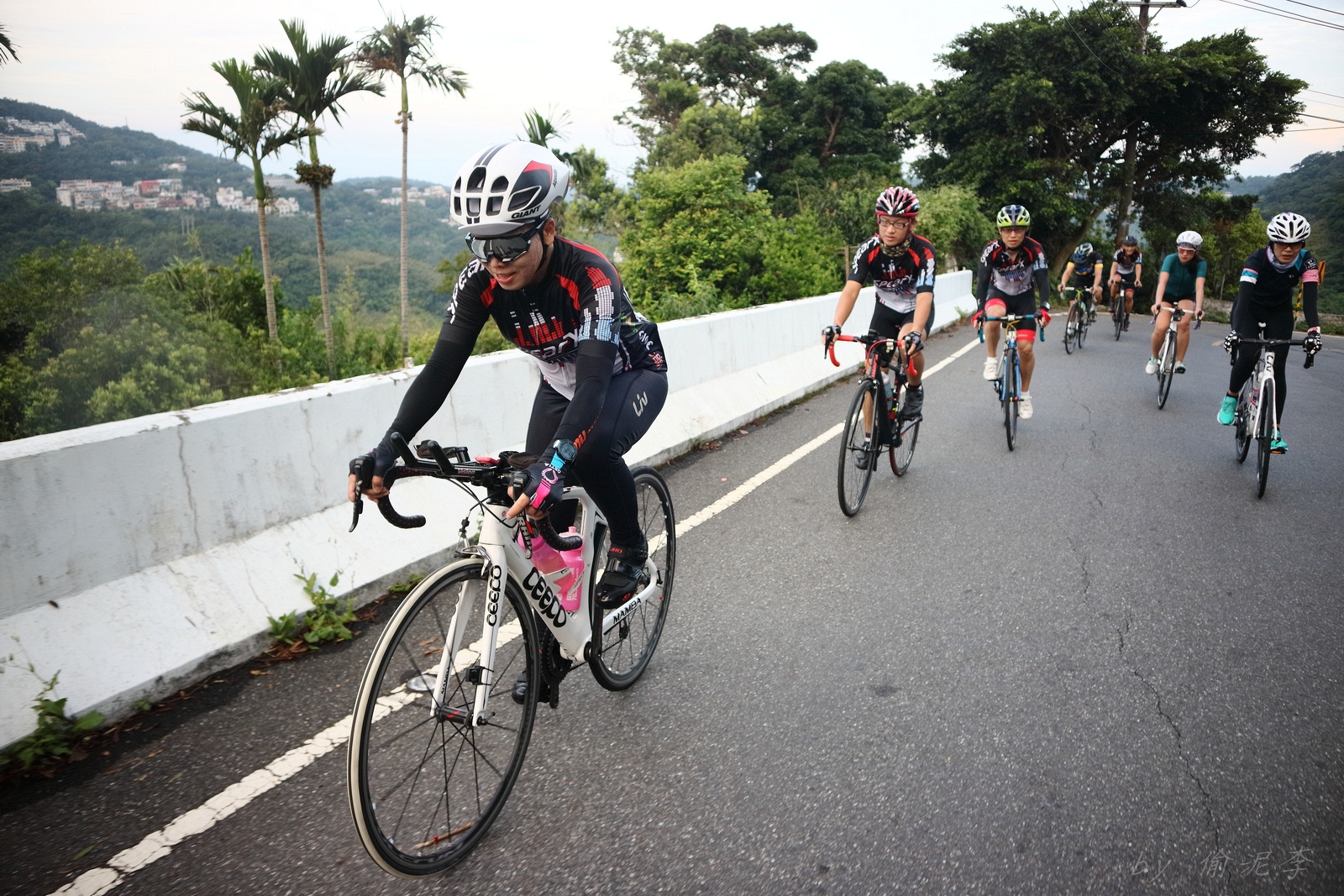 這天筱嵐姐開個5點的冷水坑團 大模開個2P的6點半團,不過集合地點在北投~ 正猶豫要去那一團時 LINDA就私訊我說明天騎那? 5點雖然很早,但至少集合地點近~ 那就一起去冷水坑團吧~ 筱嵐姐說今天有個新手雅琪 她今天第二次騎車,要稍微照顧她一下~ 我心想,才第二次騎車就要帶人家上冷水坑,會不會太殘忍~ 不過一上劍南路,我試著用推力比3來騎~ 雅琪都能緊跟著~ 本來筱嵐姐還說要先再騎一趟中社路 我就說..不用了,依這實力,直上冷水坑吧!!哈哈~ 果然~平等里也難不倒她~ 甚至冷水坑前還超越了筱嵐姐 不得不說雅琪真是位強大的新人~ 想當年LEO第一次騎冷水坑時,還落馬牽車勒~ 到了冷水坑,再直上戰備道去幫大家拍照~ 還到小油坑去和大模會合一下 不過因為要趕回家,就沒再和大模他們騎第2P~ 筱嵐姐臨時說要去騎助航站,也就沒去~ 帶著LINDA、雅琪和COLD去黑森林拍拍照~ 結束今天輕鬆騎:D