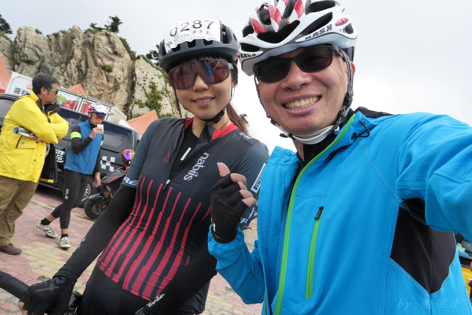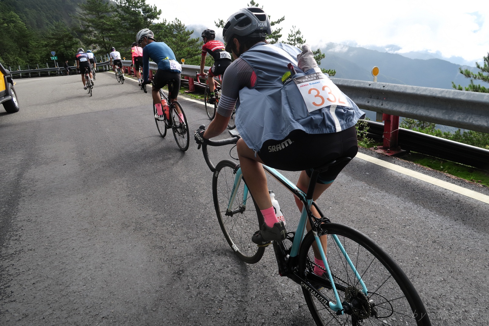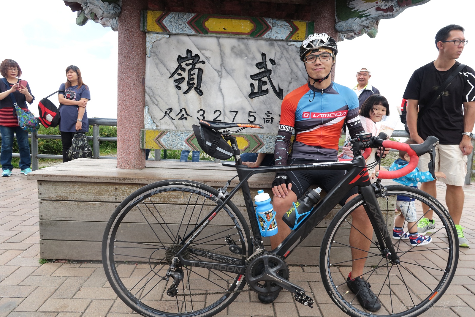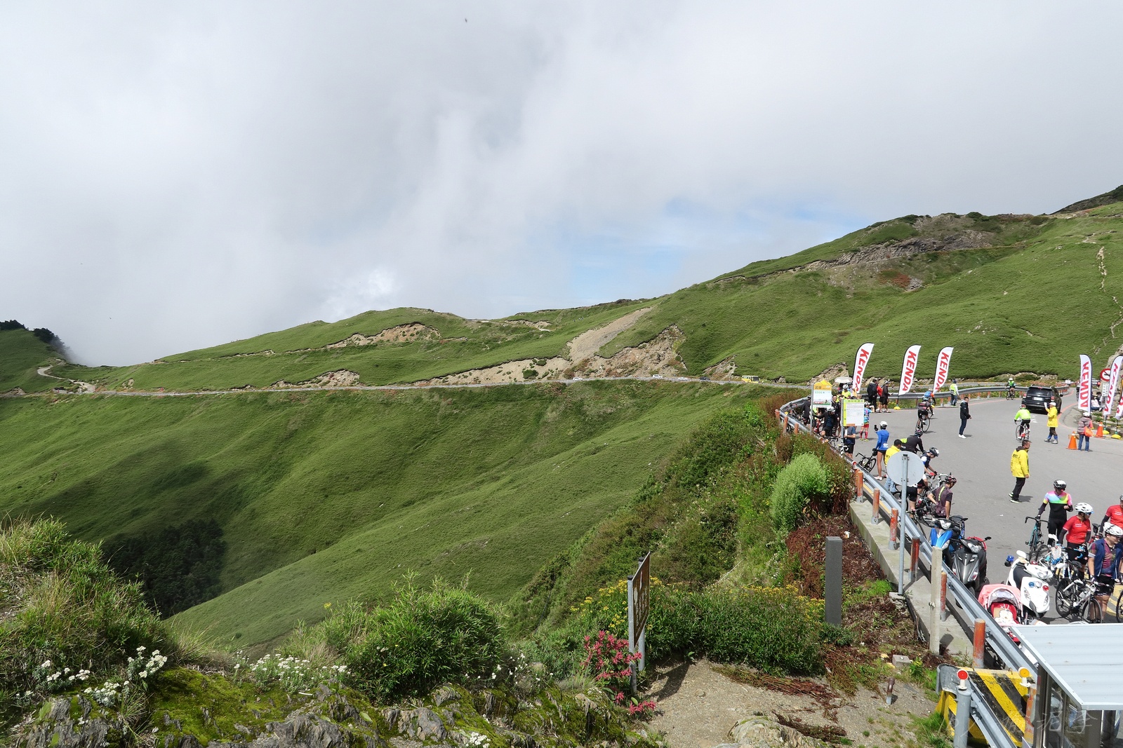 因為SNY的雙進武嶺沒參加到~ 心想最近也有認真在踩ZWIFT~ 就問問EASON武嶺盃補給車還有沒有位置!! 本想是問問..但熱心的EASON馬上訂好飯店和補給車~ 那...不IN都不行了!! 出發前應該先練個2P、3P的行程~ 但...都沒有Orz 大部份只騎1P,在家也頂多踩一小時.. 就這樣..武嶺盃到了!! 出發前還妄想目標430.. 因為算一下推力比,好像2.3就可以了~ 以我的體重,均瓦約150-160就可達成~ 感覺好像不難,但騎起來完全不這麼回事XDD 可能我的表太快樂~霧社前,均瓦約有180,但...時間僅勉強達到430標準而已~ 而前一天因下大雨,忘了把STAGE打開晾乾,這天還騎不到霧社,功率計就罷工沒訊號XDD 沒訊號就靠心跳和體感... 腿沒什麼力,一看到8-10%的坡就用上34T XDD 沒辦法,我是易抽筋體質,還是保守點好~ 出發後就一路沒休息,直到青青草原的隊上補給處..(平常歡樂騎,很少超過一個半小時不休息的,騎的股好痛T__T) 補個水,拍個合照再繼續上路~ 看來今天430無望,但看能不能保5 清淨最高小七到翠峰這一段還算輕鬆,但翠峰到鳶峰就騎到很厭世,騎到腰痠背痛,很久沒覺得自己的核心這麼給力,本想下車休息,但一直騙自己,再騎一點再休息~再騎一點,就慢慢撐到鳶峰了~ 補給一下再上路(感謝大隻推我一把:P) 從鳶峰到昆陽僅有5公里,心想快解脫了,前2.5緩坡一路順暢,心想再來好好拚昆陽後的2.2K天堂路,沒想到後面那2.5K這麼虐心...一路陡坡連發~騎到超級厭世,好想跳車T__T 好不容易撐到昆陽,就剩最後的2.2K 但~武嶺就是看的到,騎不到~ 努力死撐活撐~看著碼表100公尺~100公尺的前進,時速約只有6... 終於在448抵達武嶺~~嗚,好險還有保5.. 下次還是多練點再來~ 但下次還要再這麼自虐嗎??XDD #太天真