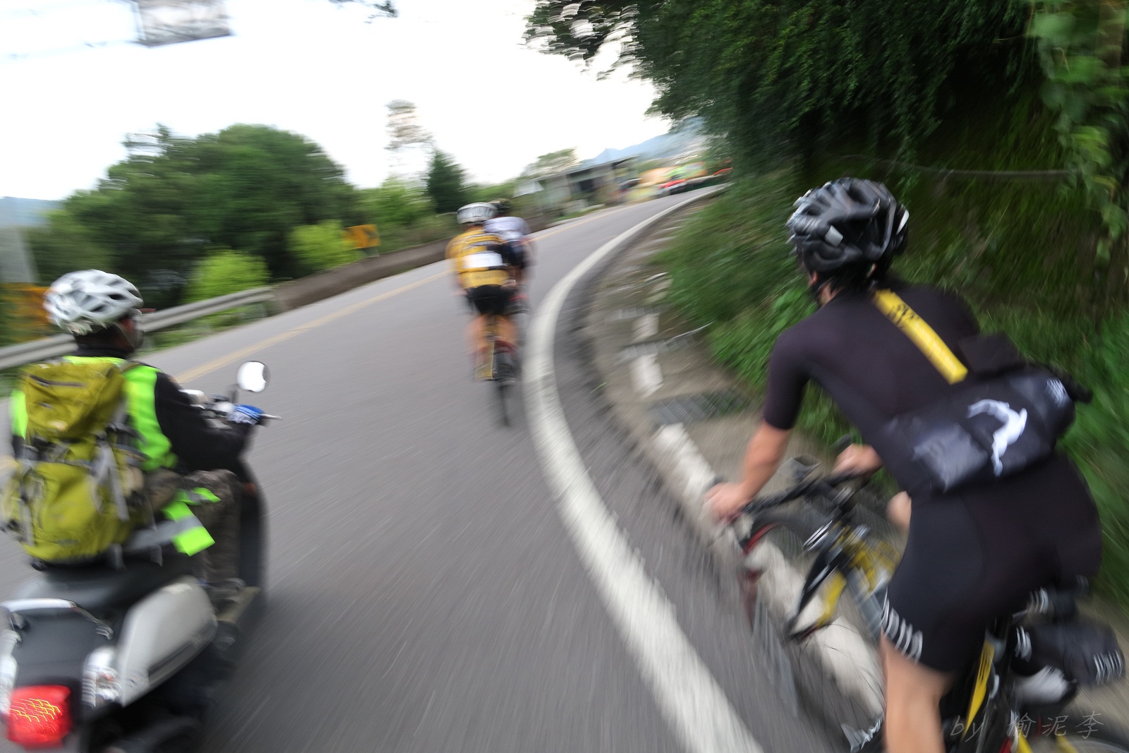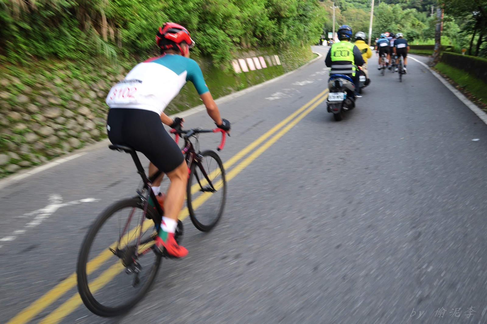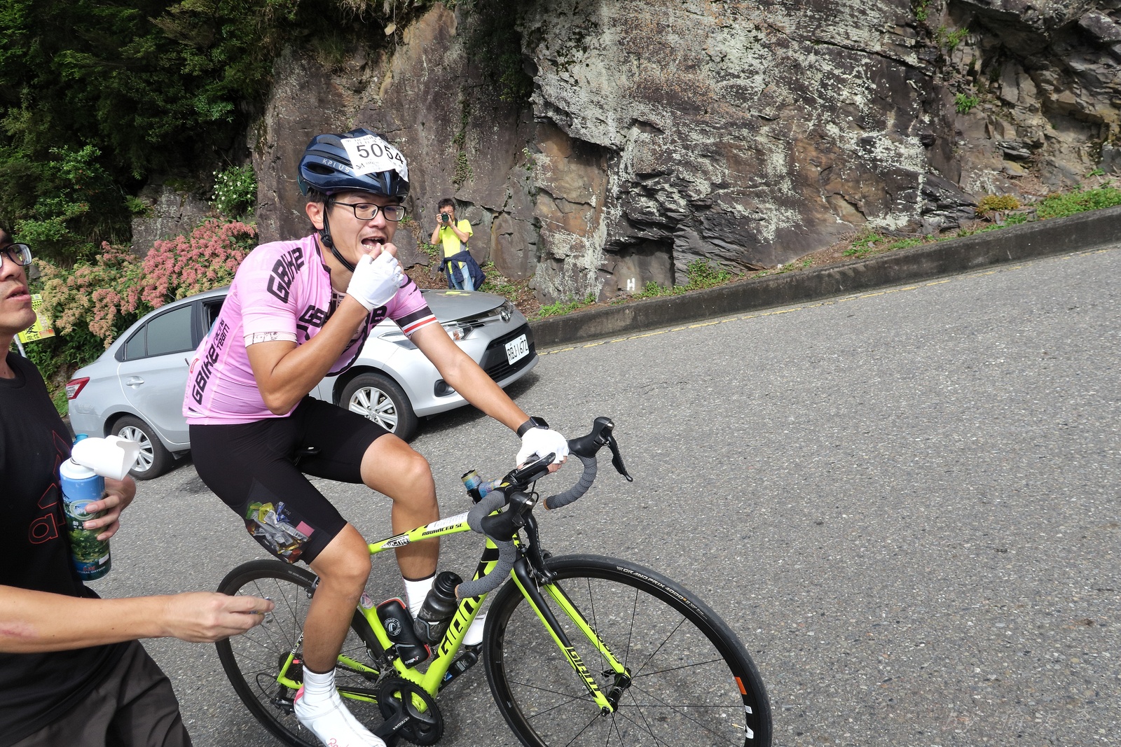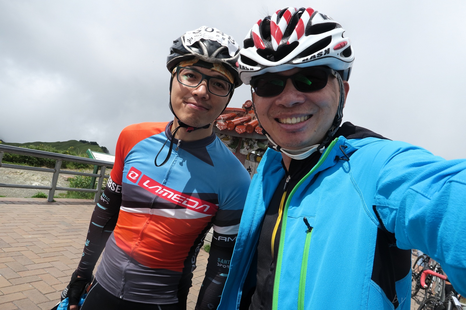 因為SNY的雙進武嶺沒參加到~ 心想最近也有認真在踩ZWIFT~ 就問問EASON武嶺盃補給車還有沒有位置!! 本想是問問..但熱心的EASON馬上訂好飯店和補給車~ 那...不IN都不行了!! 出發前應該先練個2P、3P的行程~ 但...都沒有Orz 大部份只騎1P,在家也頂多踩一小時.. 就這樣..武嶺盃到了!! 出發前還妄想目標430.. 因為算一下推力比,好像2.3就可以了~ 以我的體重,均瓦約150-160就可達成~ 感覺好像不難,但騎起來完全不這麼回事XDD 可能我的表太快樂~霧社前,均瓦約有180,但...時間僅勉強達到430標準而已~ 而前一天因下大雨,忘了把STAGE打開晾乾,這天還騎不到霧社,功率計就罷工沒訊號XDD 沒訊號就靠心跳和體感... 腿沒什麼力,一看到8-10%的坡就用上34T XDD 沒辦法,我是易抽筋體質,還是保守點好~ 出發後就一路沒休息,直到青青草原的隊上補給處..(平常歡樂騎,很少超過一個半小時不休息的,騎的股好痛T__T) 補個水,拍個合照再繼續上路~ 看來今天430無望,但看能不能保5 清淨最高小七到翠峰這一段還算輕鬆,但翠峰到鳶峰就騎到很厭世,騎到腰痠背痛,很久沒覺得自己的核心這麼給力,本想下車休息,但一直騙自己,再騎一點再休息~再騎一點,就慢慢撐到鳶峰了~ 補給一下再上路(感謝大隻推我一把:P) 從鳶峰到昆陽僅有5公里,心想快解脫了,前2.5緩坡一路順暢,心想再來好好拚昆陽後的2.2K天堂路,沒想到後面那2.5K這麼虐心...一路陡坡連發~騎到超級厭世,好想跳車T__T 好不容易撐到昆陽,就剩最後的2.2K 但~武嶺就是看的到,騎不到~ 努力死撐活撐~看著碼表100公尺~100公尺的前進,時速約只有6... 終於在448抵達武嶺~~嗚,好險還有保5.. 下次還是多練點再來~ 但下次還要再這麼自虐嗎??XDD #太天真