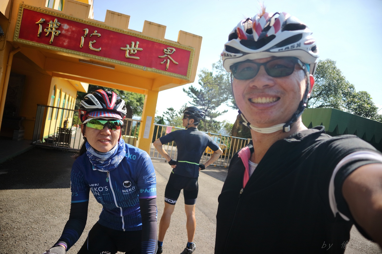 一直沒去過關西佛陀世界,擇日不如撞日,就,就開團揪人~ 可惜萬人啦賽,二人響應~(感謝 糖姐 黎妲如燕 和 小桃子 Momo Hsu) 沒關係,小團體好行動!! 本來是要跟好跟滿糖姐的~ 但老是跟在糖姐後面也不是辦法~ 去程還OK的狀況下,沒事就上前擋一下風.. 殊不知...糖姐體力超好,根本不需要我擋好嘛~T__T 從集合點車子路路口,一路就順順的騎到關西去~ 再來就是今天的主菜 -- 佛陀世界 看一下記錄約7K~,但前面幾K都很緩,樹蔭很多,騎起來很舒服~ 最後2K算是魔王坡,動不動就10多%,騎起來很喘~ 可惜今天不能入內參觀,去拍拍童話世界的城堡~(表示還要再來一次??) 回程第一次來去大溪小玲冰店,牆上滿滿的照片~,大部分是女生居多,唯一例外的就是網紅偶像 Eason Chung 的...靠,超多!!(豬肝女王肉肉也很多~) 吃完冰還有一大段回程~ 本想順順騎就好,又遇到一個怪阿伯,超過他沒多久後,他就加速超過我們,然後慢慢騎...,當然又會再被我們刷..,然後他又加速...(是很好玩嗎??) MOMO看不下去,加來帶速度,一舉把怪阿伯甩開~~!!!(讚讚讚~~) 不過也快把我搞掛了~ 身上滿滿出鹽的痕跡... 回程風不小,只能慢慢凸~ MOMO看我們慢,又出來幫忙帶 但是...一帶就是我大腿極限邊緣.. 已經很久沒被操到二隻大腿都抽筋了T___T 兩隻卻還活跳跳的,一點疲倦感也沒.. 最後...124KM,爬升1191坐收 累死我的毛... (小羊看清楚,就是這二位把你老爸操死,下午沒辦法帶你出去玩的人XDDD)