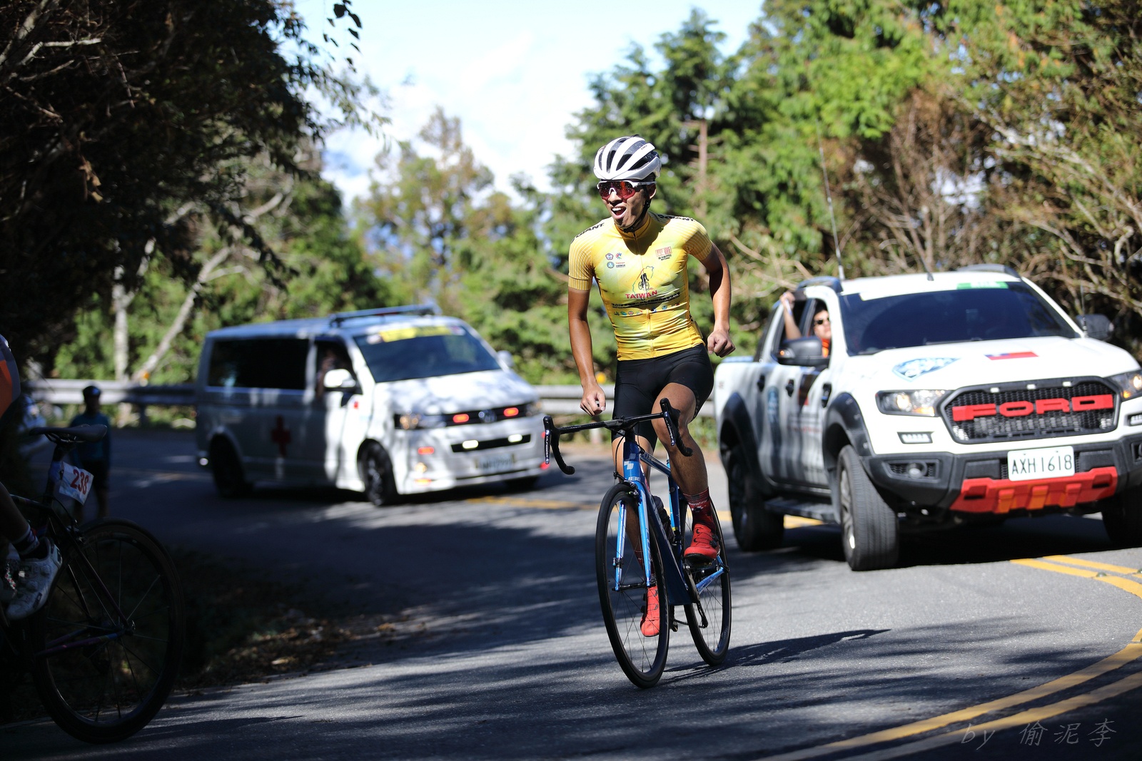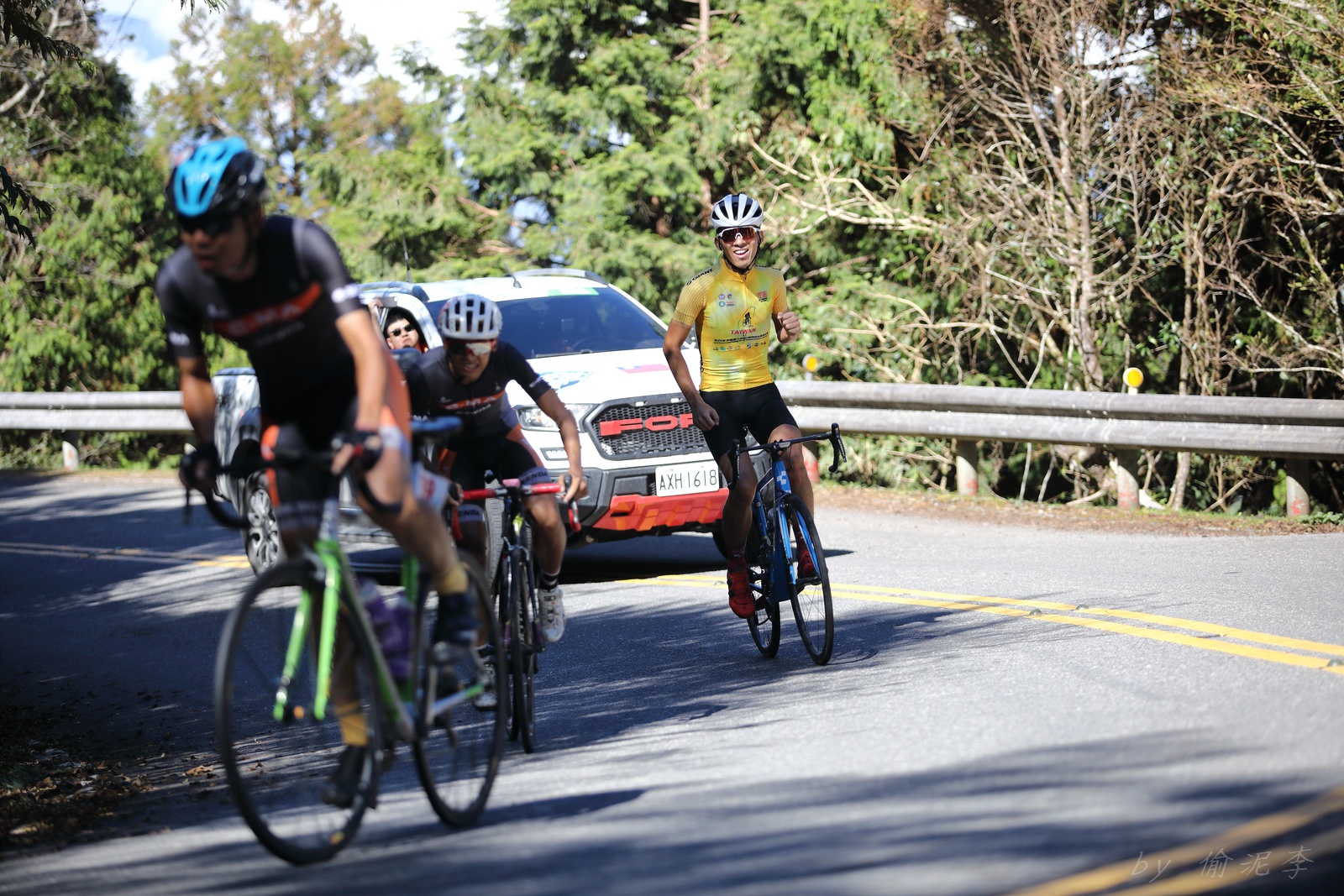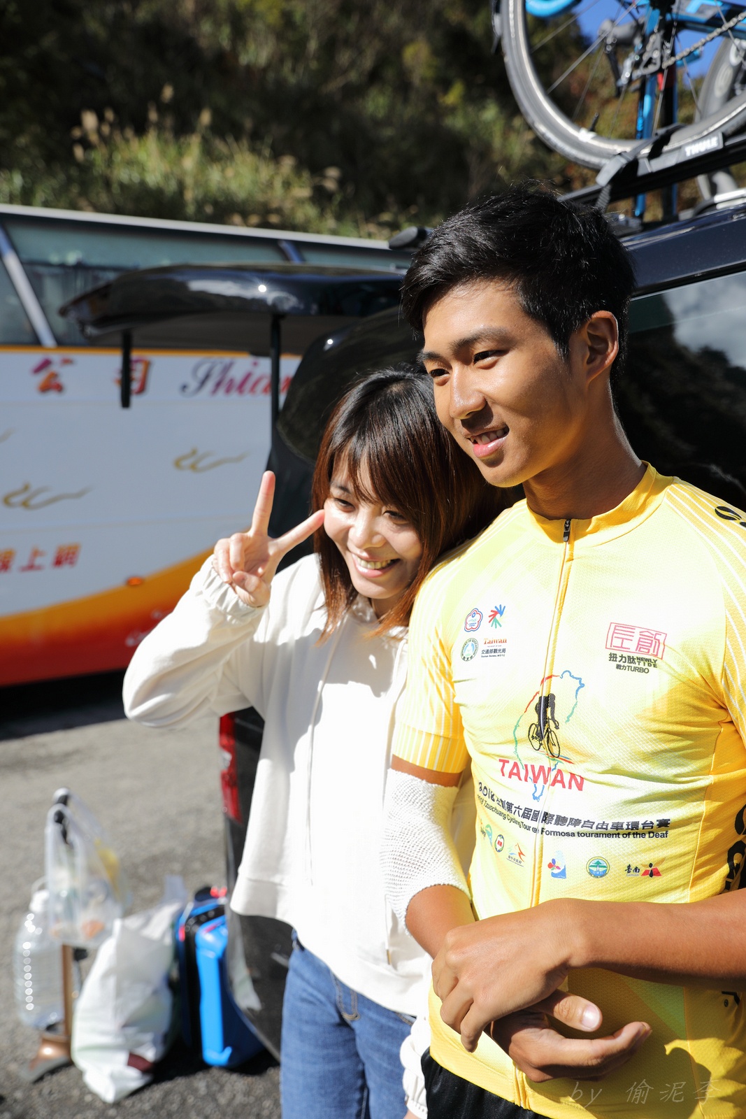 一日太平山~ 一星期以來看著同隊的隊友每天在拚環台賽~ 中年大叔的熱血似乎也被帶了起來~ 決定周日一早6點就帶著一家大小上去太平山加油!! 看著一位位選手最後在見晴步道的陡坡前衝刺~ 真是太熱血!! 但我們的昨日單站冠軍EASON呢? 原來穩穩的騎在裁判車前~ 等看到我們,整個開心放雙手騎~ 真是太帥太騙照了!!! 結束後繼續帶著全家一起到見晴步道走走~ 短短的900公尺步道,又平又緩~ 殘破的舊鐵軌上長滿了蕨類是最美的風景~ 可惜假日人潮太多 是唯一美中不足的地方!! 下山後再到鳩之澤溫泉泡泡湯~放鬆一下今天的疲勞 9點回到家~ 只能說... 大叔年輕不再,有累~~XDDD