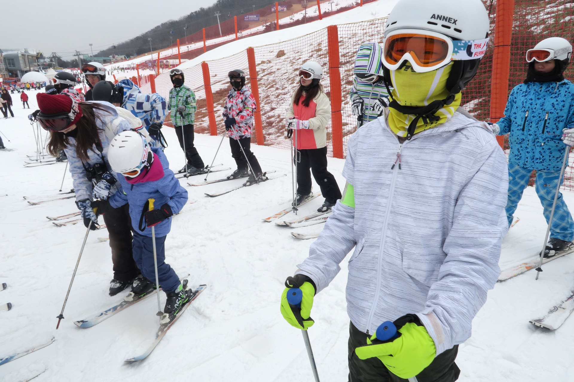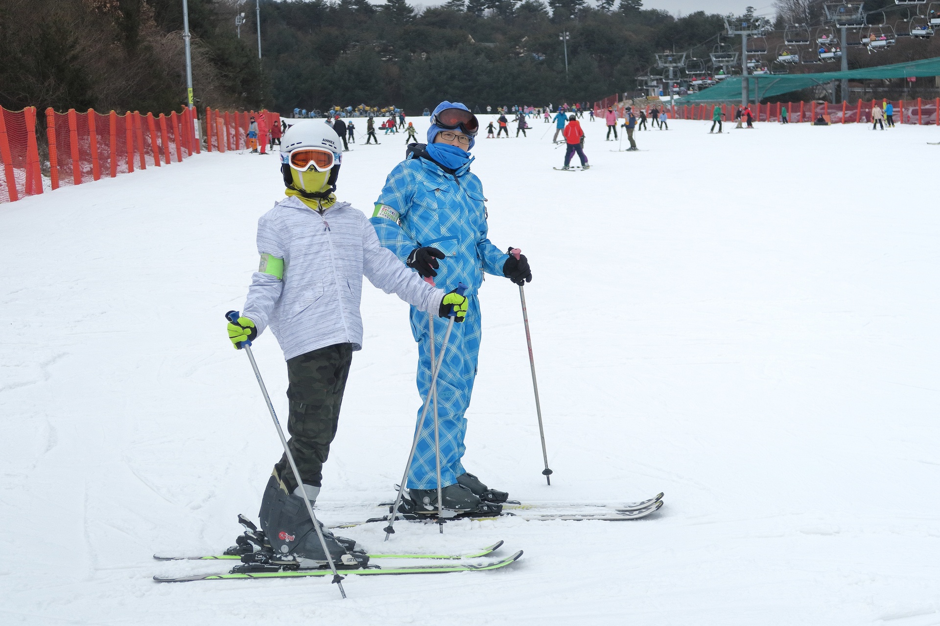 韓國自助旅遊的第二天安排到洪川大明滑雪一天 去年租了裝備直接讓小羊和淑惠上場,雖然會滑了 但感覺還有指導還是會比較好 比較KKDAY上的行程,有中文教練和沒中文教練差了500元台幣左右 有中文教練行程的比較早出發也比較早回來 回來還可以在明洞吃個飯小逛一下 就決定選有中文教練的啦~(雖然友人說...其實帶團的助教其實也不太會滑...) 至於雪場,洪川大明滑雪場是首爾附近比較大的 但到了現場才發覺也挺小的~比前年去的雫石還小的多~ 其它像龍平滑雪場或江原道 High One 雪場 光單趟交通時間就要3小時以上 若選這裡,我應該會被淑惠給捏死~ 且是初學,就近滑滑就好~ 07:00 明洞站 2 號出口集合出發 ,上車後服務人員和教練就先發給大家一個飯糰和礦泉水 車程時間約1個小時 我們先來到一個小店換裝~ 小店不大,看起來衣服也都舊舊的 若沒有準備的人還是換一下好 二個小孩我都有買迪卡儂的防水雪衣補給他們,所以都不用換 不過為了怕冷和安全起見,二個都租了一頂安全帽,一頂要10000韓元,很普通的帽子,我是覺得小貴XD 而我自己是全套衣服、帽子和雪鏡都是自己的,畢竟還是穿自己的乾淨舒服~ 到了雪場依身高和腳大小來借滑雪用具~ 至手後,感覺是很廉價的雪具XDD 因為人數不少,等大家都上雪場後也將近11點 教練很認真的講解~ 從雪具到走路、跌倒..如何站起來,重心該在那都很認真的示範說明 小羊妹也很快的就上手 大家試滑一二次後,助教就帶著大家上纜車去 這初學者的纜車很慢...比日本慢的多 加上SKI下纜車也比較穩,大家下纜車都沒什麼問題 教練再講解一下要如何用A字剎下坡..和S型轉彎.. A~~時間就快下午一點了!! 練習完初學者雪道兩趟後就下課放風 我趕緊先帶大家去吃飯 再回到雪場都已經2點多~ 要趕緊把握時間上纜車練習~ 但因淑惠還有些怕怕的 所以她就帶著妹妹繼續在初學者雪道練習 而我帶著小羊去綠線試滑 不過沒想到下午人爆多,綠線一排至少要20分鐘... 我們只剩一個多小時就要集合.. 若是這樣只能滑二趟... 綠線一趟下來不用5分鐘~(很短) 我決定轉往人少一點的橘線(中級雪道) 人少一點還是要排個快10分鐘左右,但至少比綠線好~ 這中級雪道果然比綠線陡不少也長了一倍 初滑SKI就上中級雪道,我的A字剎感覺有些不夠力~ 中間腿力不足,撐不住而失速後就滾了二圈~ 這SKI沒SB落葉飄可以玩,遇到陡坡真的差很多~ 一趟下來後雖然大腿很痠,但還有時間再滑一趟 就趕緊再去排隊... 老實說下午只滑了三趟真的不太過癮 但時間到了也沒辦法了 此次心得嘛 1.SKI初學真的比SB簡單,相對來說比較不會摔,當初學SB真的是摔到不要不要... 2.SKI沒落葉飄,遇到陡坡基本功又不行時,真的剎不下來XD 3.洪川大明滑雪場應該是人造雪,但雪質我覺得還OK~ 4.應該是離首爾近,所以人太多,光排纜車就耗太時間 5.一日來回價格約2900台幣,若不要中文教練約2400,日本雪場纜車票+租借裝備約3000台幣,我會覺得去日本還是比較划算(以安比或雫石來比較,雪場大、租借的裝備較好,滑雪的人也比較少) 教練很認真的講鞋子..等裝備 兩個小孩聽的很專心 淑惠也換了一套雪衣 小羊完全老神在在 助教KIKI是台灣人,很熱心的幫妹妹和其它學員 妹妹站姿不錯~ 淑惠這次也比上次進步的多~ 有人指點還是不一樣 坐纜車囉!! 纜車下方是停車場,左邊就是初學者雪道!!! 下次要排綠線纜車,媽呀~這人也太多... 一趟下來後決定跳槽去中級雪道,旁邊是綠線纜車排隊人潮,真是嚇死人的多!!! 這邊的中級雪道不是紅線、藍線 是橘線.. 且很多BOARDER是抱著板子上纜車的~ 我旁邊就是抱著板子上纜車的~ 初上中級雪道,真的比綠線陡上不少.. 所以我的腿也有抖~~ 回程睡到不行的小羊~ 熱鬧的明洞區 明洞水餃是金佳映介紹的 光看店名覺得不怎樣 但實際走一趟 不過店內裝潢和口味 是我覺得下次若再來首爾可以再訪的店!!^___^