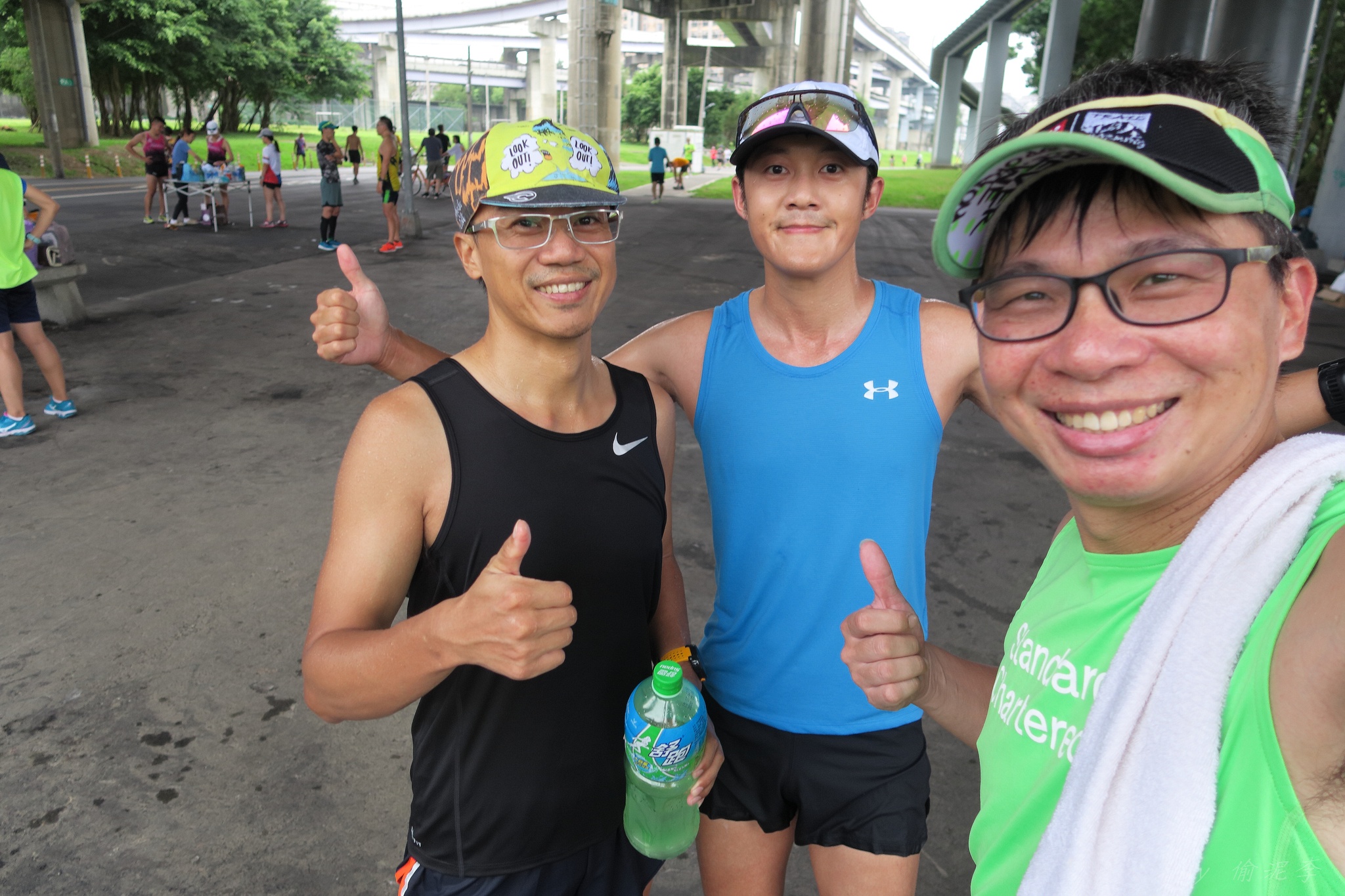 萌少女跑跑班假日河濱團練15K 同學A:我希望能配均速540 同學B:我昨晚宿醉+晚睡,TONY就麻煩你幫忙配速 第一趟 一開始先熱身633 550 552 537 528 看起來大家的狀況都不錯~ 但我心跳已HOLD不住,早早就進入ZONE3 ------------------------- 第二趟同學A一開始就超過一群平均60歲的大哥~ 超過之後人家就緊咬著不放~壓力好大XD 531 516 526 517 然後宿醉的同學B最後1K直接帶頭504...(然後她今天的課表就結束了..) -------------------------- 第三趟和同學A說前半趟我們先HOLD住~ 回程有力再加速~ 啊怎麼一出去永遠在我前面半步... 528 523 525 回程趁著下坡拉一下速度 513~ 最後1K壞叔叔一直在旁喊~最後1K~衝了,衝了.. 449.. 半個月的訓練本來是期望多打ZONE2的有氧~ 結果..每次都是都遇到朋友就直接拉到ZONE3-ZONE4.....Orz #騎車和跑步的話都不能信XDD #15K跑完連襪子都溼了_嚇到同學 #用生命在跑 #同學A是倢如_同學B是小茜