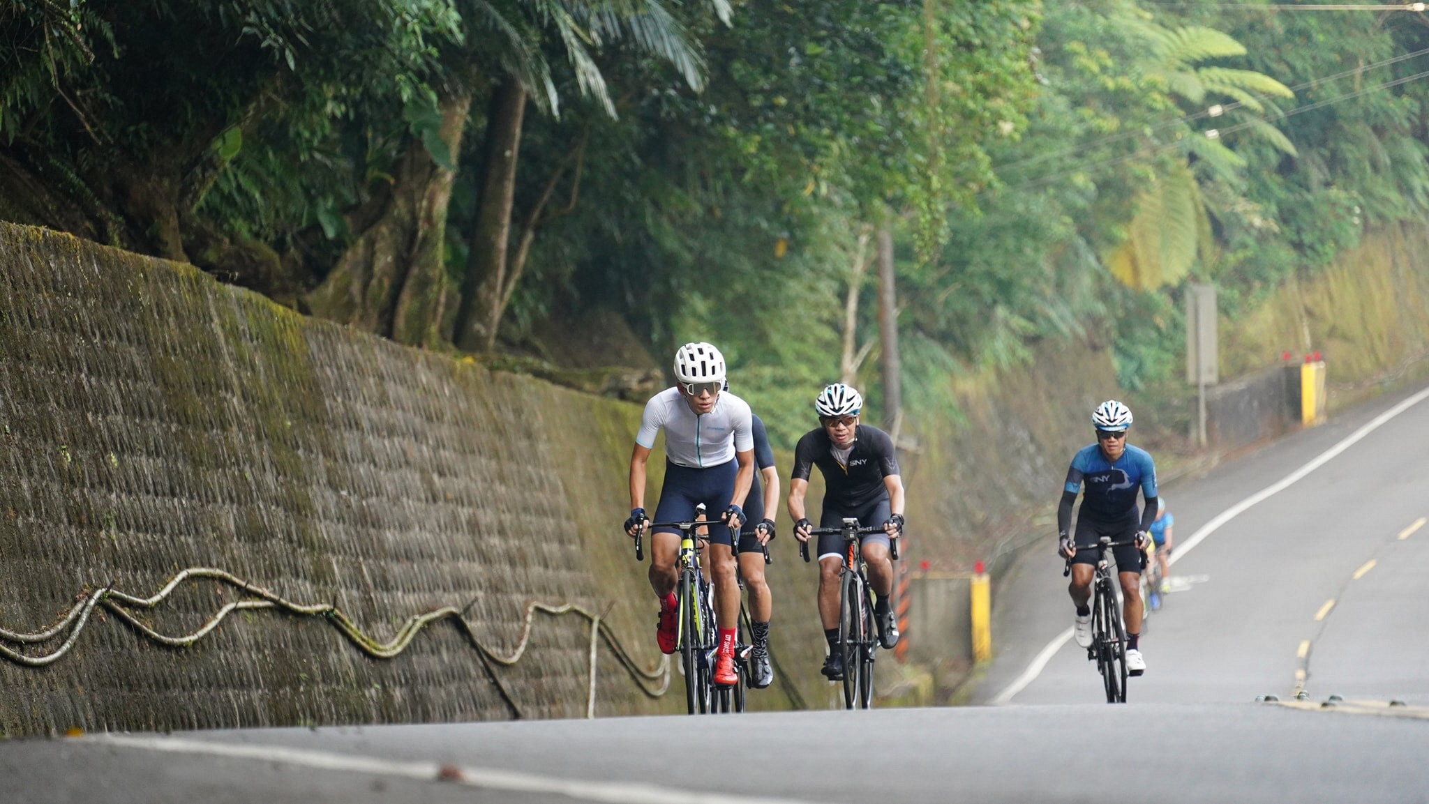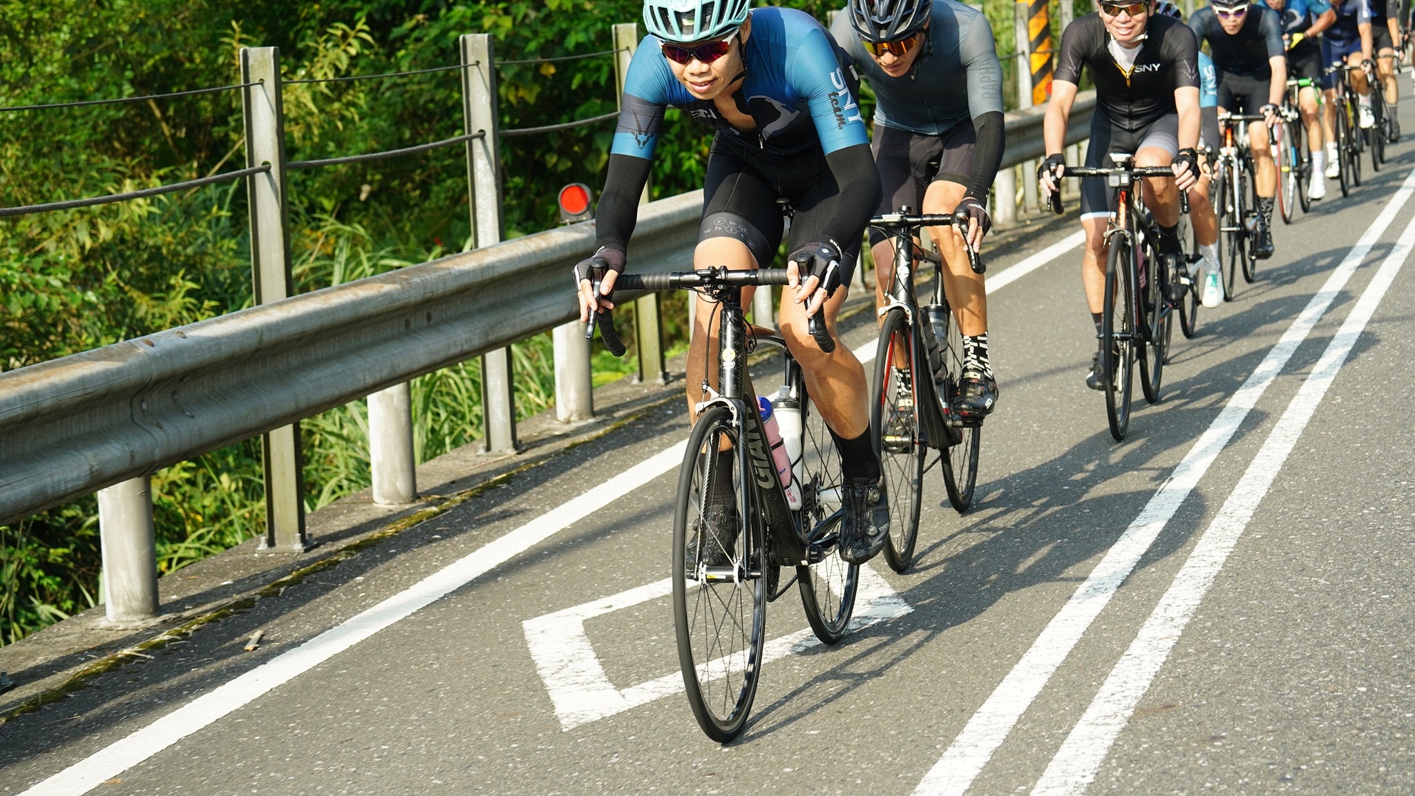 EASON的平快,我的高鐵團~ ------------------------------------------------------- 106爬坡前的輕鬆騎,都要我讓87%相信今天的騎乘會非常平和~ 但隨著爬坡開始,強度逐漸拉高~ 今天好不容易在放生彎沒被放生~~ 但終究過了姑娘廟後,還是撐不住強度~ 沒關係,EASON出發前說公車站牌會停等一起下滑 而且還有肉肉做伴~~ 那就不要硬拚~ 過了公車站~~ 啊~人咧~人咧~~ 孤單的下滑~ 沒關係,真的接不上隊伍,那十分就可以折返了 不過很快的,團長就帶著肉肉叫我上車~~ 沒多久也看到EASON慢下來帶我們 有二大菁英護體,再加上EASON的神來一掌,終於在雙溪隧道前接回集團~~ 之後雖然以下坡為主~ 但還是不乏小坡~ 大家見坡就加瓦,見坡就抽~~ 快到福隆前,EASON問我說要休嗎?? 我說...是可以再騎,但一定撐不到羅東的XDD 好的,EASON宣布在福隆補水10分鐘~~ 到福隆我戰力已去了大半 手套和襪子都全溼了 立馬灌了二瓶舒跑XDD 大失水啊~~ 往回騎回動物園好像不會比較輕鬆 那就繼續跟到礁溪去坐客運回家~~ 從福隆出發不到5分鐘後~ 強度就拉出來了 不斷的丘陵地讓我大腿開始受不了 20分後再也跟不上集團~~ 心想就一個人慢慢獨推到礁溪吧~~ 沒想到有情有義的EASON硬是要等我~ 他說還很遠,帶著我比較快~ 也是,後半的路線下坡較多 在EASON的破風之下,速度也快上許多~ 大溪前,主集團出了點小意外 大家停在路邊休息 沒想到我一停車 二腿立即大抽筋~ 停在路邊動彈不得XD 好險大模即時發現,過來幫忙扶車、按摩~ 坐下休息一會舒緩許多~ 但再繼續跟著隊伍會拖累大家~ 我請大家先走,我去對面全家休息一下再騎~ 但EASON又說要帶我一起到頭城去,光叔也說再來大家慢慢騎就好~ 再堅持下去就更拖大家的時間~ 拖著抽筋的腿,努力跟上大家 大模也馬上下前幫我擋風 在巨大的大模後面,這段平路均速有31KM~ 但均瓦也僅有104W而已~~ 終於終於龜到了頭城~ 和大家揮手說再見~ 感謝有愛的大家 不離不棄~~ 我愛你們~~(泣) 下課~ #回家後老婆說肚子瘦了_臉也瘦了_人也變帥了 #第一次在礁溪坐噶瑪蘭回台北_只要95元好便宜 #感謝智超毛哥請吃冰 #下車時三人一起在客運放行李箱處抽筋動彈不得超爆笑 #大感謝MOMO攝影