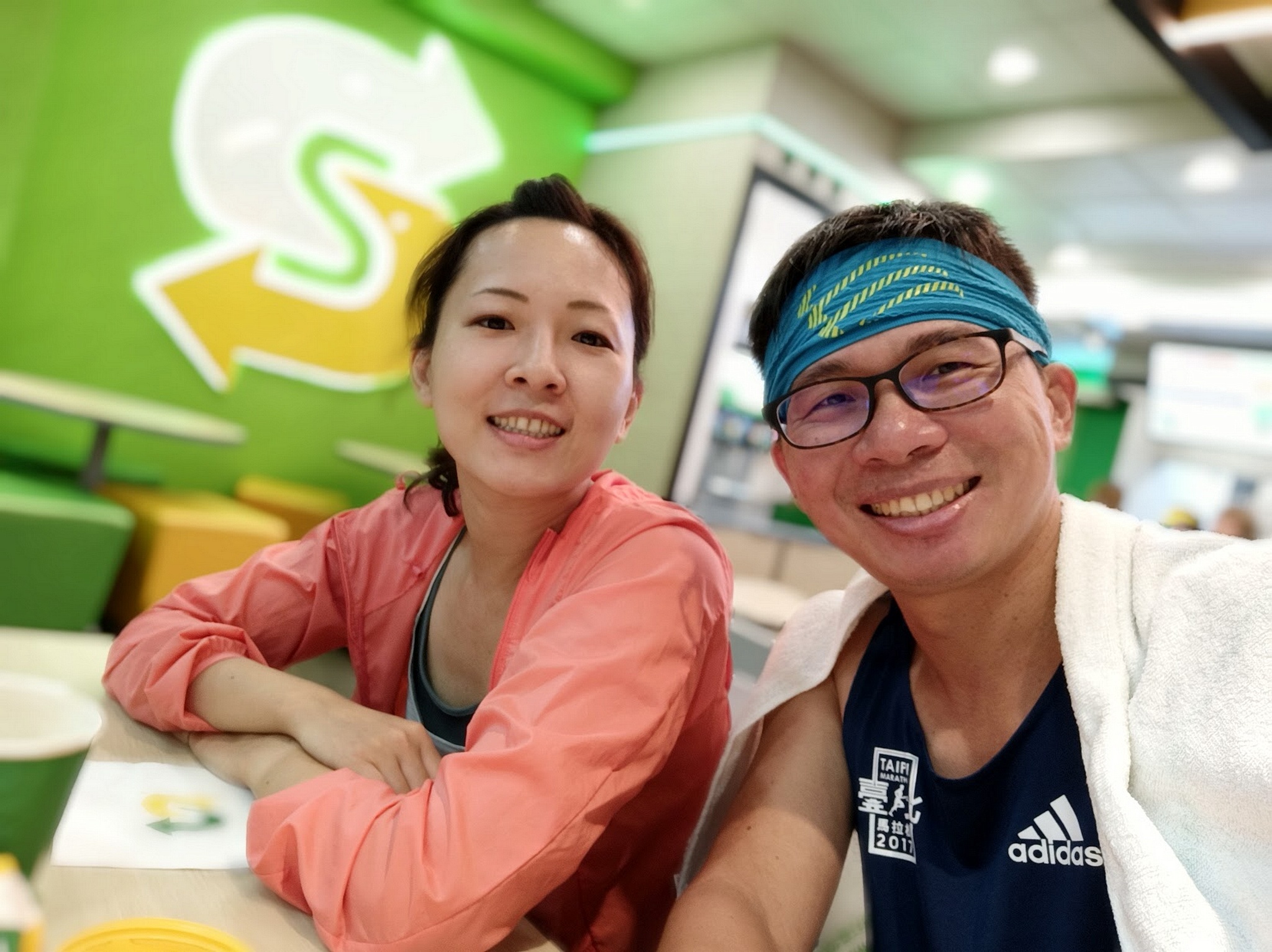 昨晚和可愛學妹約去台北體育場跑步 快到集合點才發現身上沒半毛錢 還好學妹身上還有200元現金+悠遊卡 我們才可好好在 subway 吃晚餐😅😅 #學妹說不要跟我跑了_壓力好大 #但學長要還錢啊 #下次應該會記得帶錢了😅