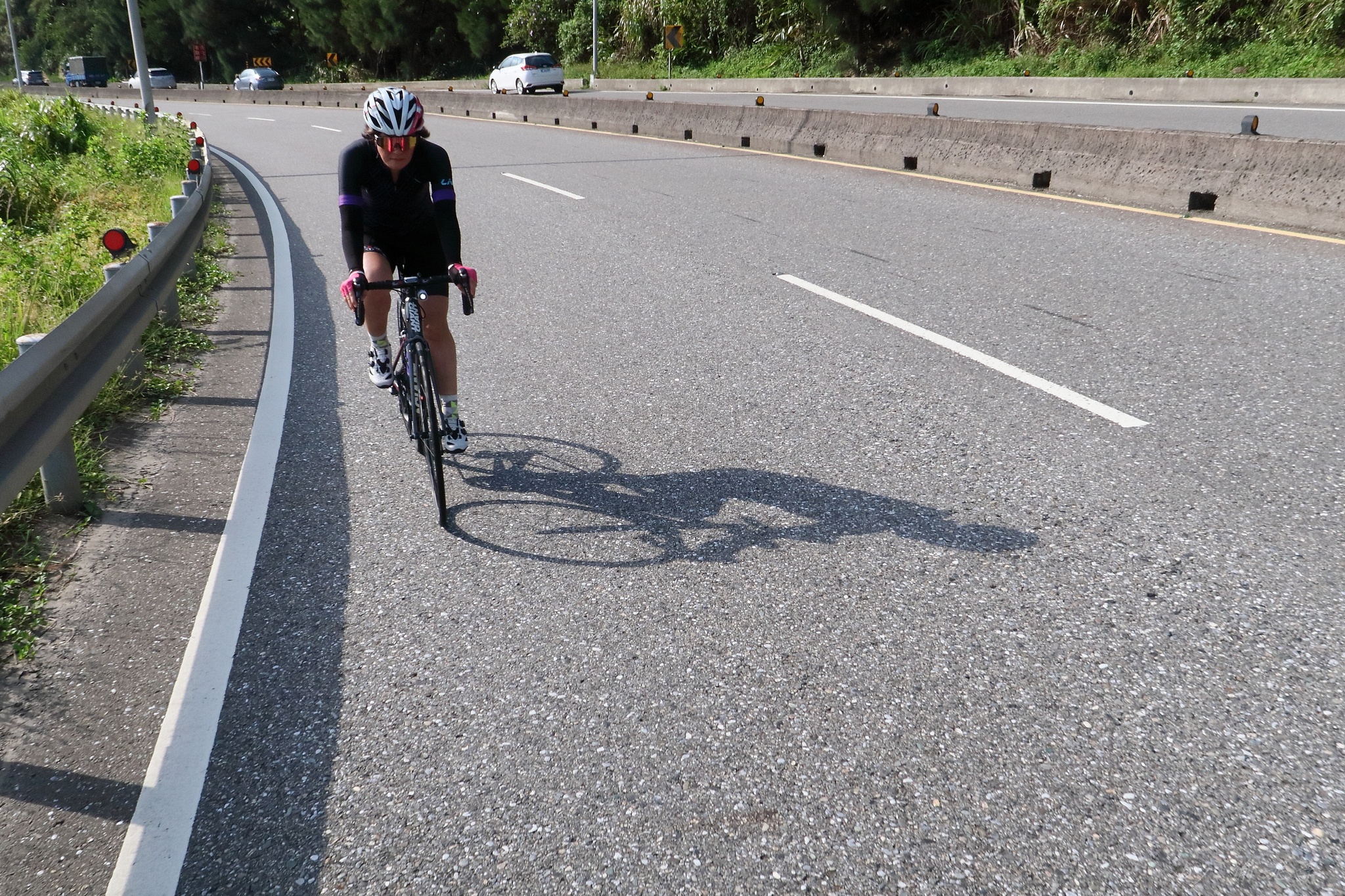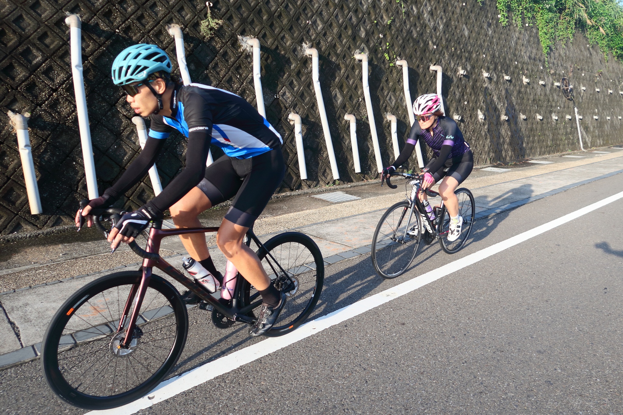 來來來~~傻T又來了~~ 今天是大模新車首航 當然要來捧揚一下~ 傻T:明天騎那?一樣外木山來回嗎? 大模:明天新車來了 傻T:耶~~那一定要陪騎一下啊~ 傻T:A~明天WINNIE會一起騎吧? 大模:她不來你會怕嗎?? 傻T:乾,怕死了~~ 預定路線--士林--金山--三芝--巴拉卡或小坪頂 實際路線--士林--外木山--三芝--101--紅樹林 結果集合時間太早,開團了還是只有我們三個~~ 沒關係,三人成團~GO~ 一開始出發還算順風~ 所以都還可以陪在大模旁聊天~ 但過了石門之後風向轉換 就乖乖躲到Winnie Lu後面啦 整路大模都保守的騎 最後上外木山時~ 為了讓他試一下 我在最後500公尺先發動微弱的300W攻擊~ 搞到我自己心跳到180~差點喘死 不過也稍微讓大模有小拉到一下 在萬里小七休息時發訊息給妮奇 種下今天二腿抽筋的結果~~ 才過金山沒多久~ 妮奇就打電話來~ 妮奇:你們在那?我已經回到淡水了~ 傻T:靠~~也太早了 妮奇:我慢慢往回騎到三芝和你們會合 又才過白沙灣 妮奇:我到三芝小七了~ 靠~~你這是慢慢騎嗎? 早上才跟完吹風團,明顯是騎不夠,等會要被虐了~ 到了三芝小七稍微休一止 妮奇:大模,等會你不用等我們,好好試新車,WINNIE我們來陪就好了 傻T:我剛只剩150W了,不要虐我 妮奇:這瓦數剛好聊天~ 才上路不到5分鐘 妮奇就抽車噴走了~~噴走了~~ 人家貼心的回頭來陪,不好意思讓妮奇一個人 拚死拚活的跟上去~ 妮奇就霹哩趴啦的隨便聊天 妮奇:叔叔你為什麼不陪我聊天.... 傻T:我都快喘不過來了,要怎麼聊天....T__T 後來就抽筋了~ 妮奇還一直喊,叔叔跟上~~叔叔跟上~~ 搞到傻T一抽再抽......Orz 大模表示:你耳根子怎麼這麼軟... 話說已經沒力了 最後的上坡大模開直接開300W推著WINNIE走~ 我一個人在最後面都快哭了... 終於最後撐到紅樹林站才能解脫 感謝大模帶路,妮奇最後的80...T__T