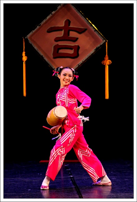 首頁這張是冷靜老師的學生--陳縈宣。表演的節目名稱是「吉祥花鼓」。這花鼓叫「長穗花鼓」,是一種技巧性高的東北漢族舞蹈,舞者運用長穗尾端的重力舞動著,在多變的舞姿下還能準確的敲打中腰間的花鼓,舞蹈中搭配著活潑的節奏,高難度的技巧,增加了舞蹈的精采度。