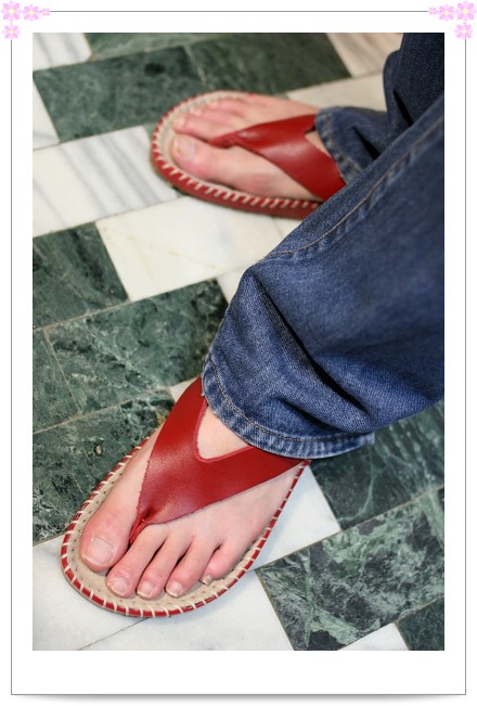 這下老婆就煩惱了,沒有夾腳的舒服,夾腳的好看。那要選那一雙呢??東想西想,左穿右試...最後~~還是好看的勝出,女生果然就是愛漂亮滴!!最後老婆就開心的把夾腳涼鞋帶回家囉!!^____^
