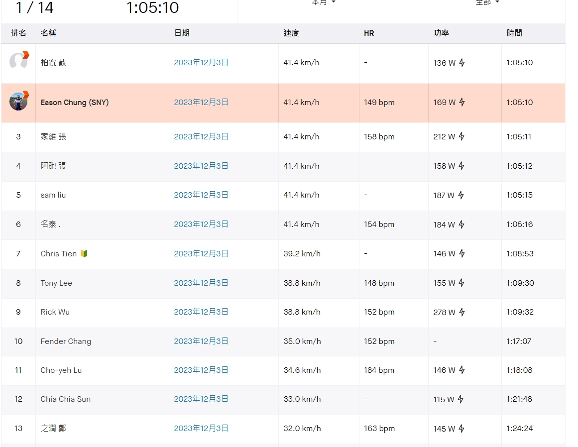 戀戀197~ 除了參加過花東365挑戰賽外 這是薯叔第一次參加公路競賽 當初SNY EASON登高一呼 就揪了一大團人一起去197比賽(玩) 那時想說參加個130k市民組應該還好吧~ 但隨著時間愈來愈近 越覺得沒信心 平常頂多騎個60K就要休息小補一下 這個要高強度的,我能一次騎完嗎?? 且久聞平路賽裡的集團很恐怖 各種的卡位和三寶~ 到底是怎麼情況? 感覺有點緊張!! 想想去程是台東--三仙台北上是逆風 那好歹也要跟著主集團騎完逆風段 回程順風,若一個人掉隊看海也不會太辛苦~ 賽前好好請教此次菁英組M35第一的EASON 他說不要跟在集團的的最後方 會拉間歇的很兇 比較安全的位置是在前段 然後遇到上坡時,不用跟著前面一起拉很大~ 穩穩的騎,慢慢退下來沒關係 從集團尾端接回去就好 再利用下坡擠回前段位置 重點就是折返時的三仙台大橋 那邊集團一定會加瓦 一定要跟上~ 聽的我似懂非懂的~ 反正開賽就知道了 比賽的目標,低標就是跟著完成主集團北上路段 高標就是跟著主集團回到197爬坡點 100分就是還能有推3上197~ 不過最重要的是平安完賽啦 ------------------------------------------------------------------------------------------------ 實際開賽前,沒有想像中緊張~~ 運氣好,卡在出發線的前二排 槍聲一響順順的騎了出去 看到同梯的大模、充董、喵王和品宏都在更前方的位置 有空檔我就慢慢游到前方 還不小心就發現騎我前方就是阿得和康康 人這麼多還遇的到真的巧~ 前10K是熱身段 前導車速度都壓在30以內 騎在集團內一整個輕鬆舒服~ 放行後,速度直接+10~都在40上下 不過速度雖然快,但身處在集團內真的省力 記得放行沒太久,突然有人喊:有水壺~ 就看到一個黑色水壺從腳邊滾過 還好沒被波及到~~好險 然後就聽到有人大喊說:都幾歲了還掉水壺~(這次是第四梯出發, M45以上男生都在這組,人數相當多~) 然後在集團內雖然省力 但速度不是太平均 一般跟車很少按剎車 但集團內沒得閃 前面降速,光靠滑行還是快撞上前車 只好按點剎車 然後就要再加瓦跟上 幾段小爬坡都有努力加瓦跟上 也不敢像EASON說的掉太多(頂多讓幾個選手超越就努力跟上,因為不知集團後方到底多少人) 感覺有點用力又不會太用力 努力保持在集團前1/3的位置 都在品宏附近 然後就看到前方有個紅色車衣的大模 幾乎都卡在前5的位置 超威的 跟著主集團很快速的就來到三仙台旁的小路 趁著微下坡,我趕快游到前20-30人的位置再迴轉~ 迴轉抬頭一看, 靠這個坡真長~ 馬上加瓦推力5-6先跟看看 然後慢慢降到4左右 就被後方車友不斷的超過 看過前方10公尺處大模也慢慢退下來~ 我不知後方集團有拉多長 心想只要吸上大模,他就一定可以帶我回主集團 腿好痠,肺好喘,但撐著不敢放,放了就沒了 在爆炸之際終於接上大模 也剛好結束爬坡段進入隧道 真是快累歪 這也是我唯一和大模並肩,並超過他一咪咪的時刻 接著就下坡,快快調整呼吸 努力再游回隊伍前方(大模又拚到隊伍最前方去了) 下坡底再接成功鎮緩上坡 集團再小拉一下 雖然有順利跟上 但心想若拉下去 我就要準備去看海了 還好剩下來的路程集團就相當穩定 即使有小緩坡也都不太拉強度 大概就是準備決戰197的坡~這段集團都順順騎 弱小薯叔才可以存活到197山腳下~ 真的超級感動的T___T 對於今天的表現~有高標了 剩下的爬坡段,就是順順騎完就好 然後拿出今天的第一條膠~XDD 對~沒看錯,第一條~~ 喵的~不是我神勇, 是在集團內真的沒膽拿膠出來吃 又不太敢退到外面去吃,怕緩一下就掉到天邊去 追不回來...Orz 雖然一起入山,但擺爛騎最後成績的結果就是輸大模8分鐘~ 不過~只輸大模8分鋰,薯叔已感到十分安慰了~哈哈哈 今天平安下莊+跟著集團回197山腳下~ 我做夢都會笑了~哈哈哈~~開心 #我愛SNY #恭喜偶像EASON菁英分35第一 #跟大家一起出門就是開心 #戀戀197 ------------------------------------------- 第一次覺得,原來ZWIFT裡的團騎速度是真的!!! 以前在ZWIFT裡團騎時,大概180W上下就有時速40公里 都覺得太唬爛了 我跟車算可以貼很近了 也沒法這麼省瓦 但這次戀戀197 去程逆風45KM~均速38.8,均瓦155W 回程順風50KM~均速40.7,均瓦132W 不過這是平均功率比較不準 看看NP 184W比較準一點 龜在主集團裡就可以有這樣驚人的均速 但~這樣是很輕鬆的嗎? 並沒有~ 體力也許還好,但極耗精神力 且許多短坡沒跟上就直接掉出主集團 最明顯的就是折返時的三仙台大橋 菁英組要開出推5 2分多鐘 市民組大概是推4.2 2分半鐘(幾乎是全力了) 所以看AP以為可以跟的上菁英組 但再看看三仙台大橋的數據 別傻了,直接GG啦~ #公路賽菜鳥 #學著長大 #所以EASON說看他均瓦很低千萬不要信_一個坡就讓人GG了 外部連結