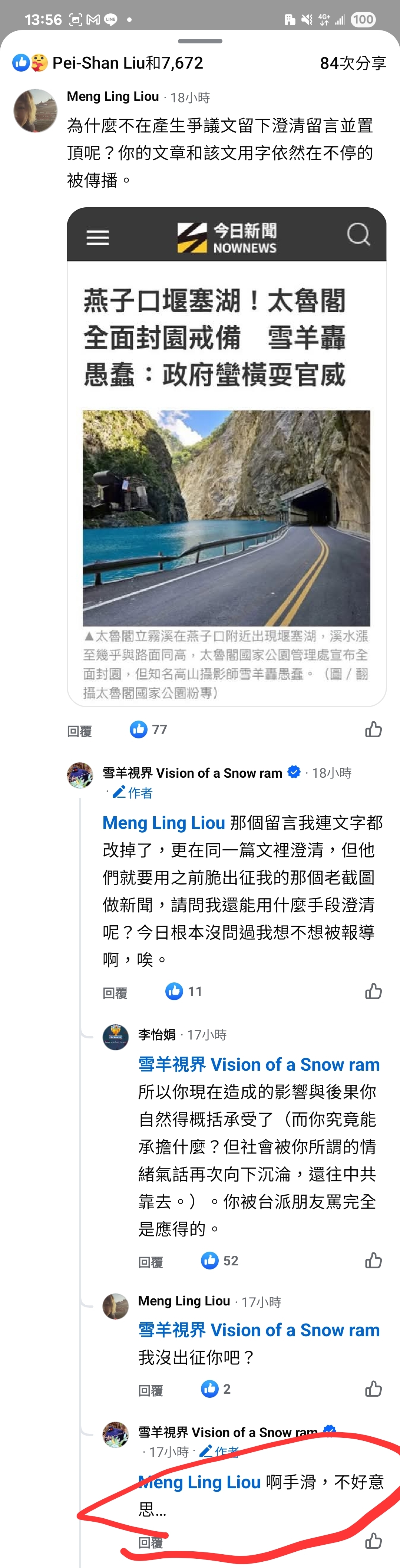 其實我剛看的時候也覺得為了燕子口的堰塞湖封閉整個太魯閣國家公園,政策是否洽當??雪羊的說法有他的思路及邏輯