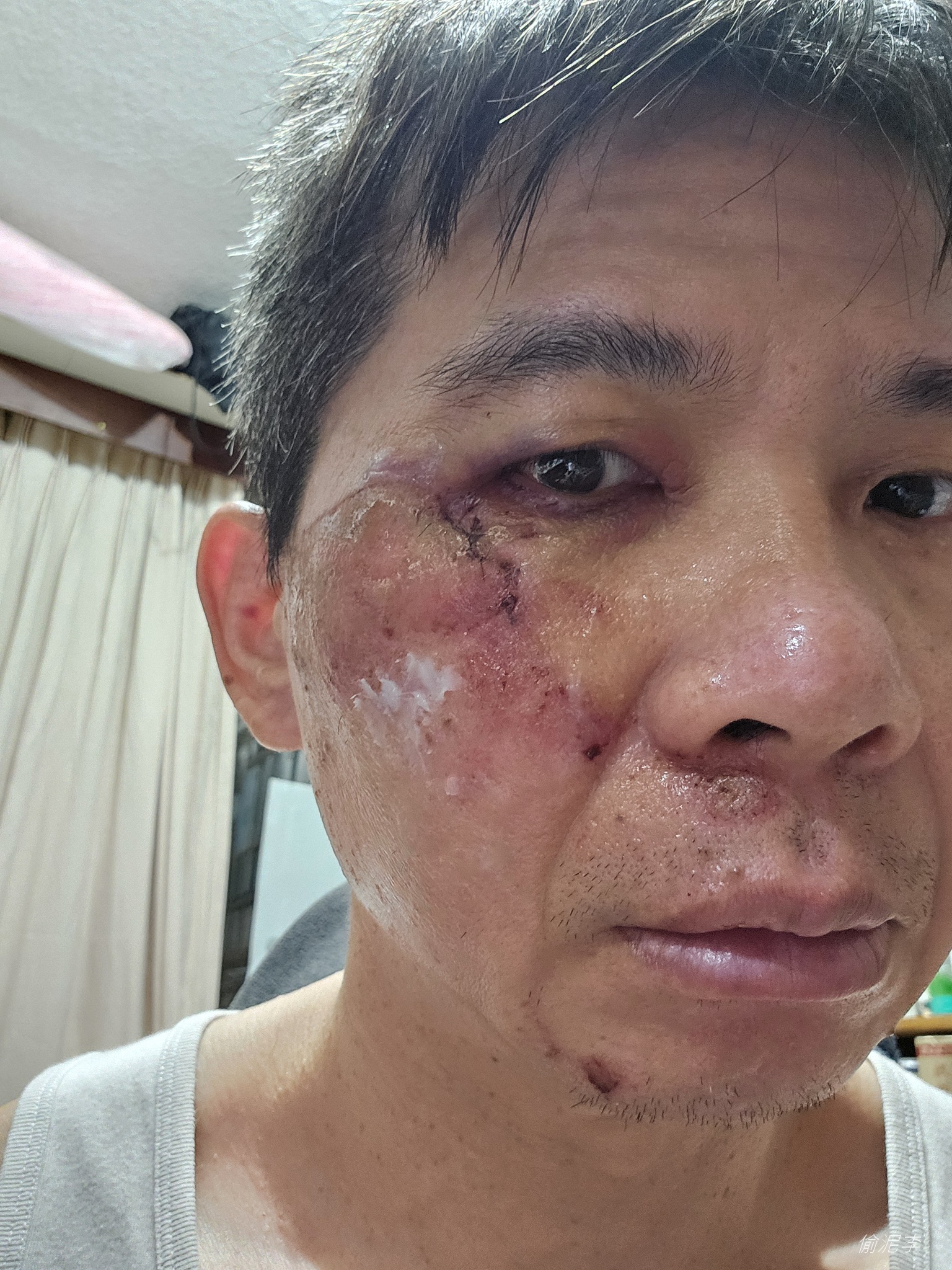 1/25是個風和日麗的一天 但~~薯叔摔車了 騎在石門水庫往鶯歌筆直的自行車道上 有個看不出來的缺口 突然有人騎UBIKE從缺口轉了出來 距離相當的近 看到的第一反應就是急剎 然後就發現車子前傾騰空 再來人就趴在地上了 摔車當下沒有馬上站起來 算是趴(跪?)在地上 聽到周圍一直有人在說話 但我忘記他們說什麼 喘息了一下,自己慢慢撐起來 第一眼先發現地上有血!!!(居然流血流到地上了) 再來看到我左手中指,居然歪了~~(有嚇到) (照片有驚悚,請酙酌點入) 然後我也不知道休息多久(那段時間感很差~) 只知道金爺還是騎UBIKE的人協助打119,協助報警 然後GARMIN有自動通知老婆 老婆沒多久就打電話過來 我很快就回撥說摔車了,等救護車中 然後也不知道為什麼打給肉肉 後來二人都說,我那時講話很鏘 反應很慢,不然就是問A答B 帶了手機就上了救護車..(對方的太太也陪我一起上救護車) 只能請金爺協助我處理公路車及散落一地的其它東西 救護車上慢慢清醒一些 再和老婆聯絡一次,好像還是處於驚嚇中 所以大部份都是對方太太協助回答 而我大概只記得淑惠說會請二姐夫載她過來 到了醫院後拿著手機拍了手指和自己的臉 才覺得有點嚴重 然後手指照X光,腦部照斷層~ 手指沒有骨折,是脫臼 醫生叫我忍十秒就立馬喬了回來~(喬回來後果然有比較不痛~) 而CT看起來腦部沒什麼大礙 算是不幸中的大幸 臉部流血的部份 右眼下方有4CM的撕裂傷 縫了6針 然後還有四肢擦挫傷 一切都處理好準備去批價領藥時 淑惠和二姐也剛好抵達 而我的公路車也麻煩少暐開車載了過來 但姐夫的車放不下,還是先請少暐載回台北 改天我再去載回來 姐夫再帶我去大溪警局做筆錄 反正就如實以告 很感謝對方一路陪伴協助就醫 所以最後也不先提告民事或刑事 只先說有些財損部份事後再討論協調 回來這幾天 每天就忙著擦藥換藥 沒空也沒心情整理照片或當天經過 然後回想事發前幾天在房間看韓劇「鬼怪」時 背後書架上放著之前老爸訃文的袋子突然無預警的掉了下來 我心裡就想著~好像怪怪的 然後上車放MP3,幾百首的歌就剛好播到鬼怪那幾首歌 也太剛好了 現回想起來是不是就代表了什麼警訊 但一直沒法猜到是會發生這種事 過了4天的休養 今天總算有比較好轉的感覺 慢慢整理一下這事發經過 很感謝當天金爺、肉肉、少暐、二姐和二姐夫的幫忙 然後最辛苦的就是淑惠了 讓她擔心又讓她每天忙著協助我換藥,還有生活起居 回家後,小羊妹看到我的時侯也嚇哭了 小羊嘆口氣沒說什麼,只給我個大大的擁抱 而老媽當然就是好好唸一頓 這幾年下來還真是摔了不少次 印象中一次在往福隆路上摔到我的SCOTT報癈 一次在復興三路摔到輪子變形 貓空摔到差點開刀 觀音山轉彎時整個滑倒成在地車友 然後這次算不幸中的大幸 但也上了救護車(人生解鎖?) 這幾天真的有默默在想 是不是要再繼續騎下去呢?(可惡,最近的狀況還不差說~~) 或著要調整一下騎車的方式? 啊~~ 身體先好好康復,車子也先修好再說吧~~ 最後也感謝這幾天關心的朋友 還有我受傷就被我打擾的林醫師~ 謝謝大家的關心 薯叔會快快充滿活力回來的!! 外部連結