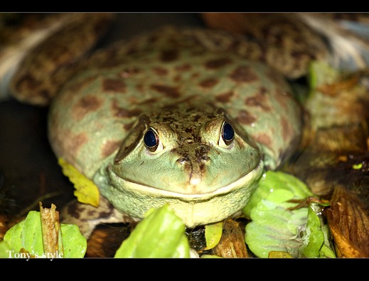 是啊~~牛蛙也被列為台灣32種青蛙中的一種,但他在野外其實不常發現,大部份都是被放生或是從養殖場裡偷跑出來的..,若在野外有看到牛蛙,基本上都是抓起來直接帶走,因為牛蛙比起台灣本土蛙種的體型實在大太多,若同在一棲地裡大概會被牛蛙給吃光光>"<
